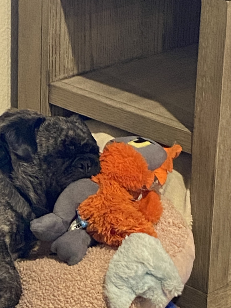 Wow she’s got 2 favorite toy's of course it’s the crinkly one that she has to work to get the treats out and the puzzle game that she had to get her treated out of. She goes to it every morning as we come out of the room. She’ll even wake me up sometimes at two 3 o’clock in the morning, just to come out and see if there’s treats in it.