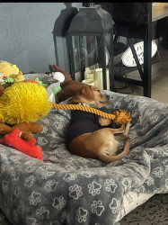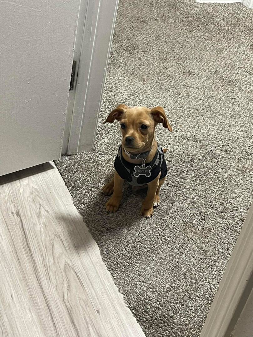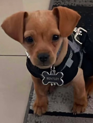 Bentley is a great dog and would be lucky to be part of anyone’s home that loves pets. He’s well trained and is a very good dog. He would be America’s favorite with his cuteness, spunk, playfulness. He’s a very easy dog to handle because he does not get into things he shouldn’t “just keep tissue or socks away from him” lol. But overall he is well behaved for still being a puppy.