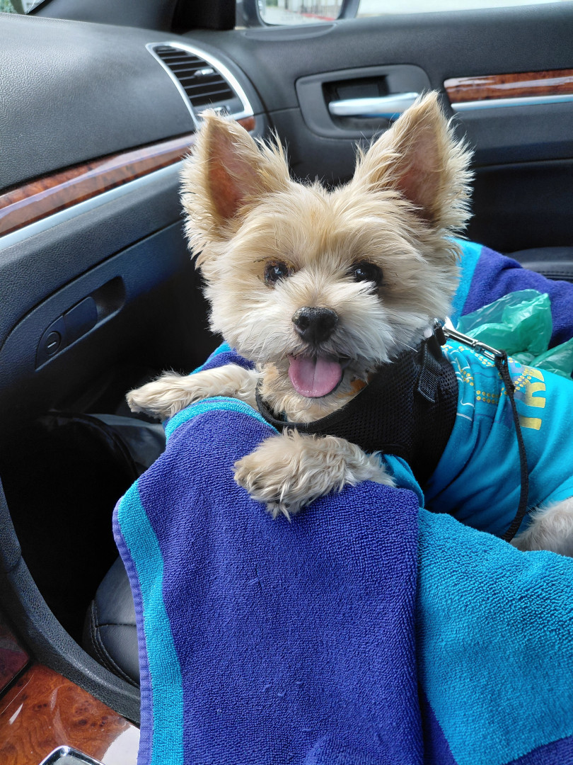 He's my energetic 15 yr old yorkie who loves our walks greeting every neighbor's pets + friendly squirrels. He's loves winter and his boots!