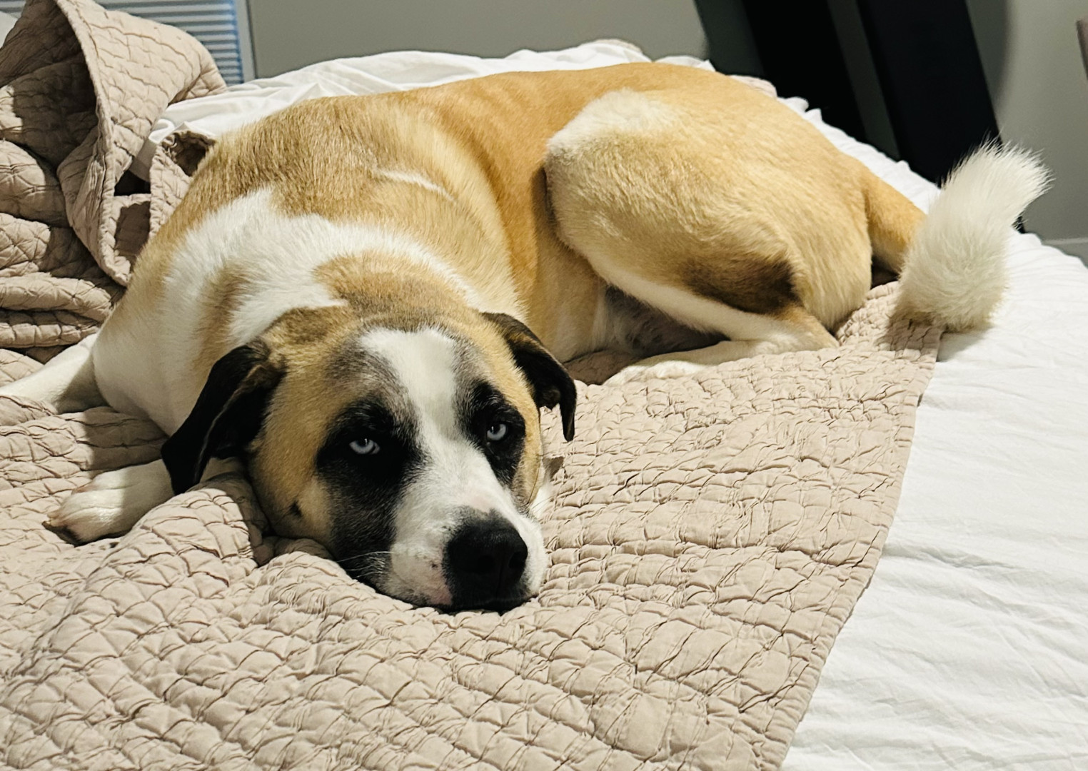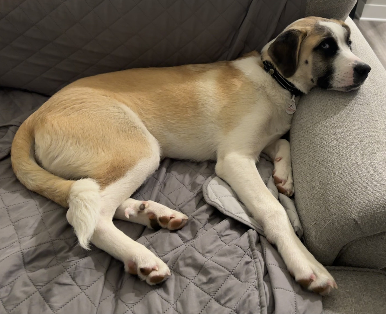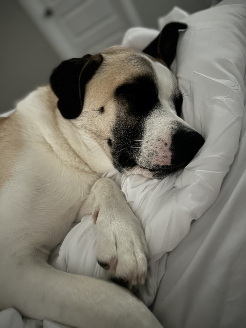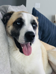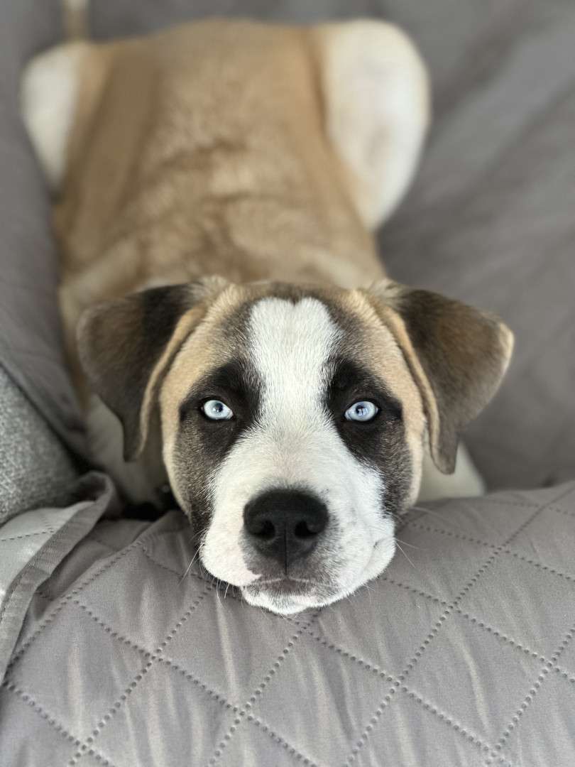 Bernie is a 3 year old rescue who is cuddly and loves to spend time at doggie daycare and relaxing on the couch!