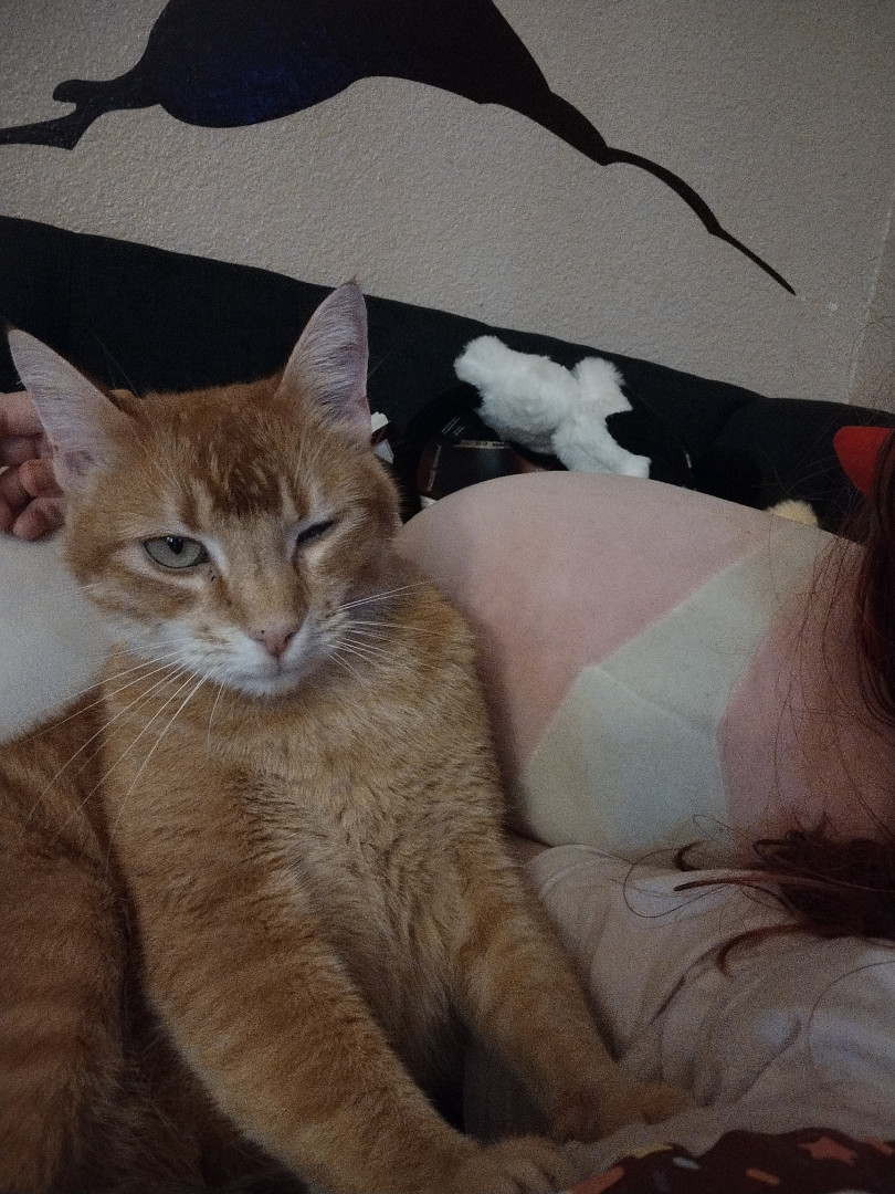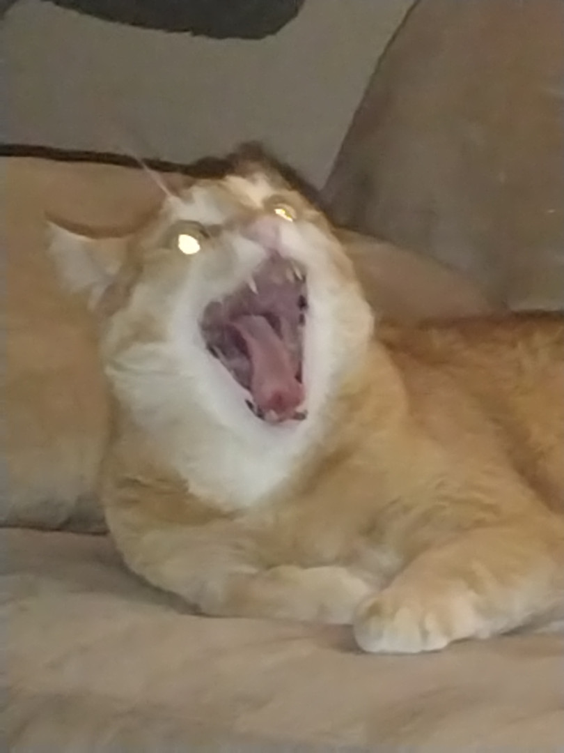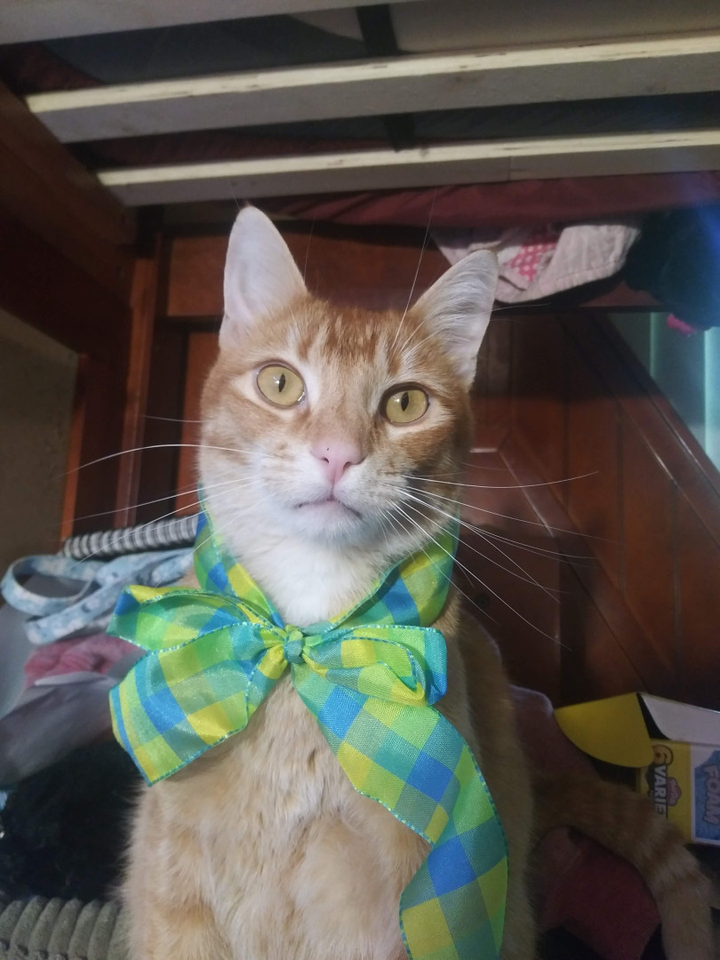 Berry Allen is a seven year old ginger tabby who loves devouring treats like a vacuum. He is very silly and weird cat yet is very loved.