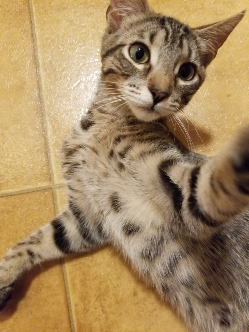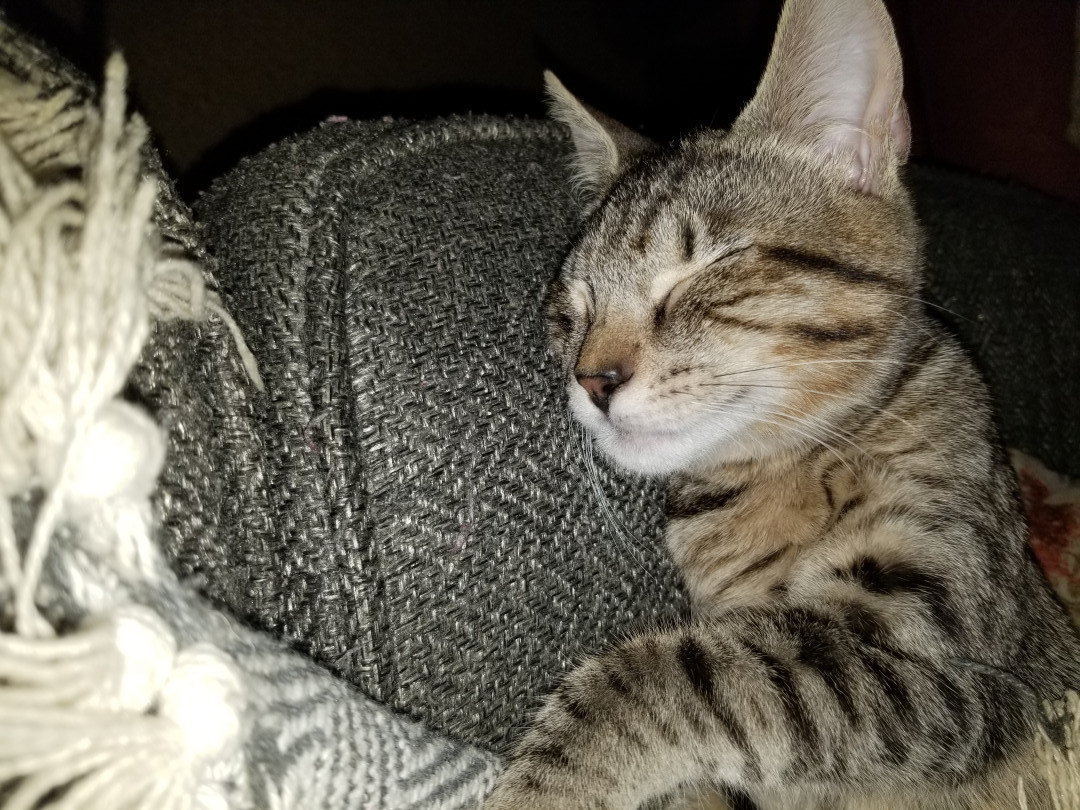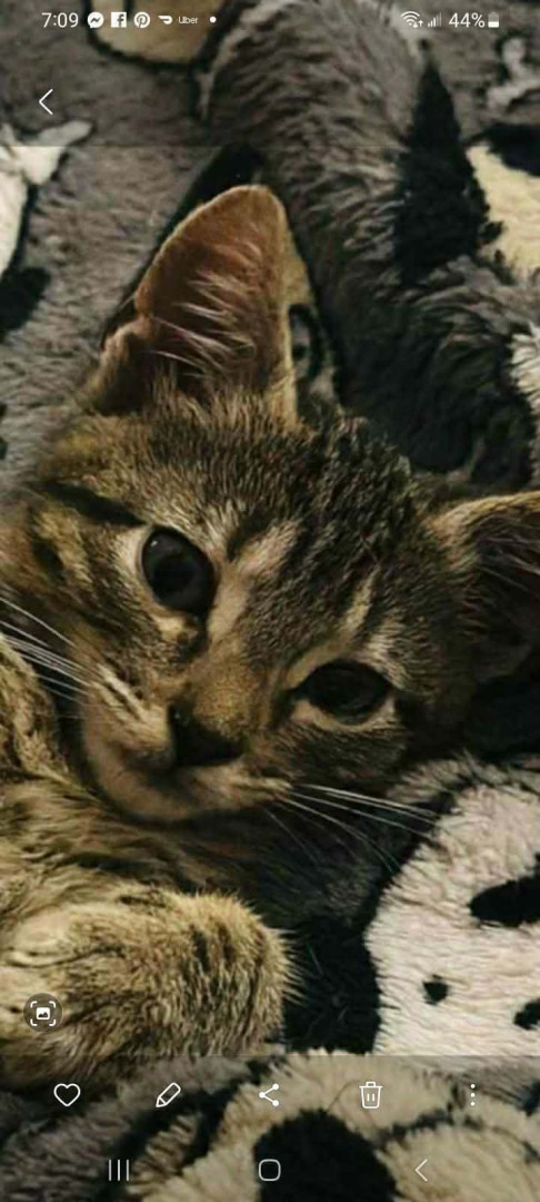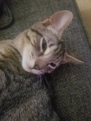 Bette is a tiger cat with all the characteristics of one. She is sweet and lovable, too. Bette is 8 months old and she's the best.