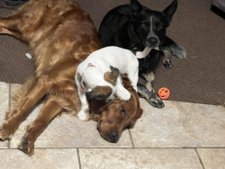 Miss Betty is a little firecracker just like her name Betty White. She can hang with her big dog brother and sister and be the sweetest.