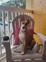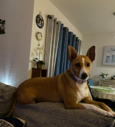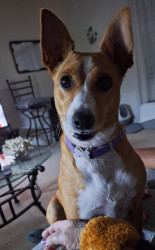Beverly is a Portuguese podengo dog. She's a 3 year old rescue that was found all alone with her umbilical cord still attached.