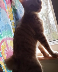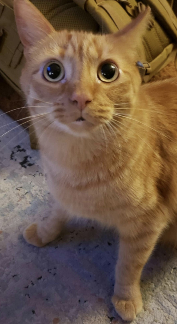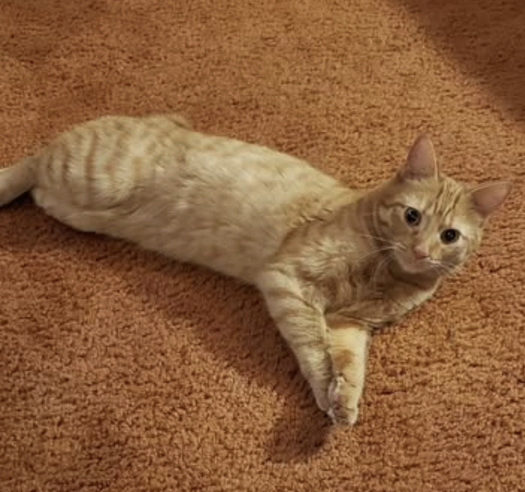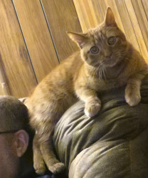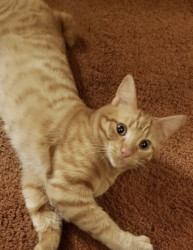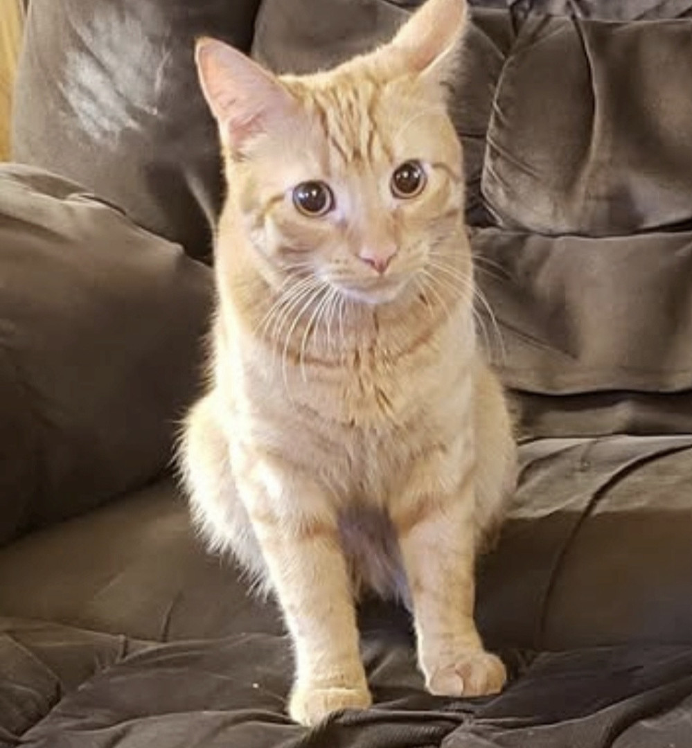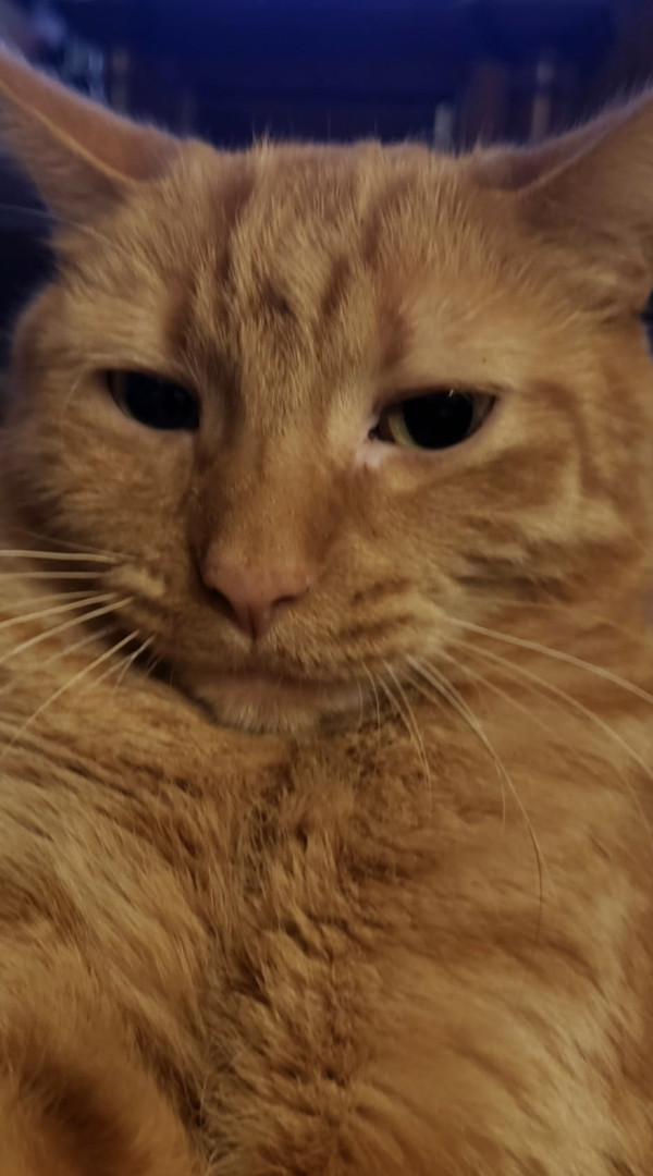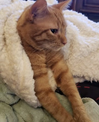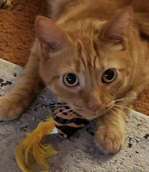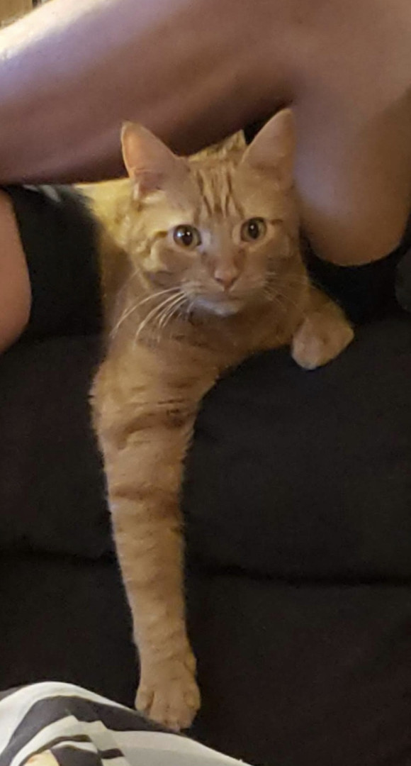 Big Worm is part Manx and a spirited orange. Has a cute bunny tail. He is loving and ornery as can be! Loves to boop you with his velvet paw