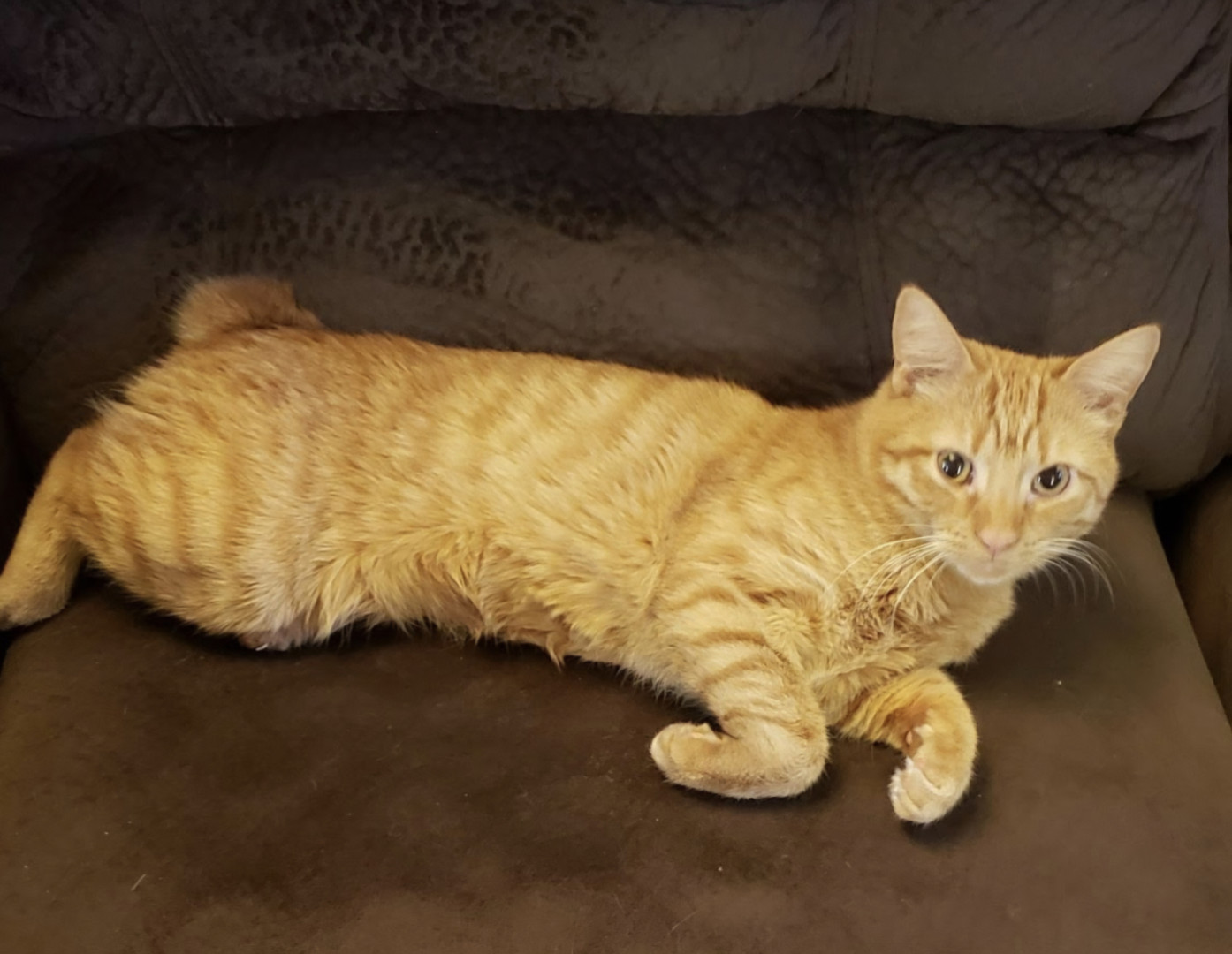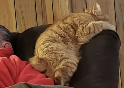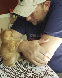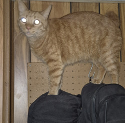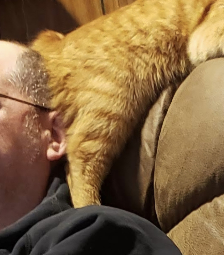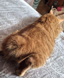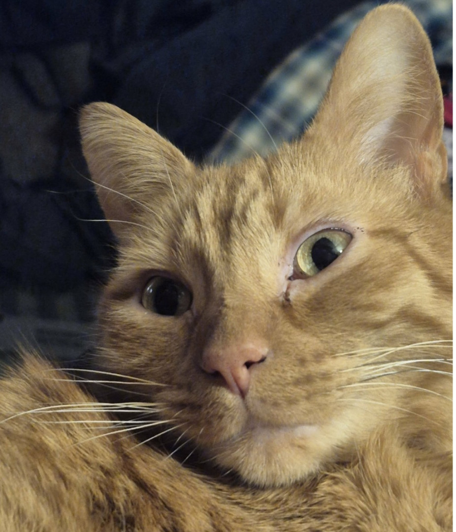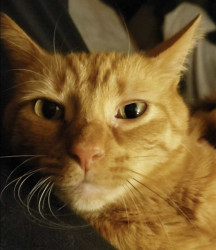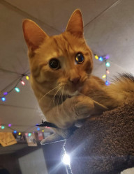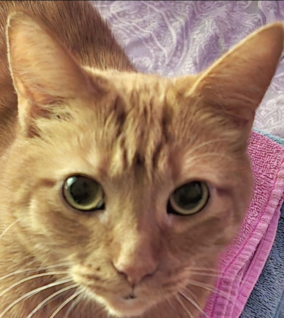 Big Worm is part Manx and a spirited orange. Has a cute bunny tail. He is loving and ornery as can be! Loves to boop you with his velvet paw