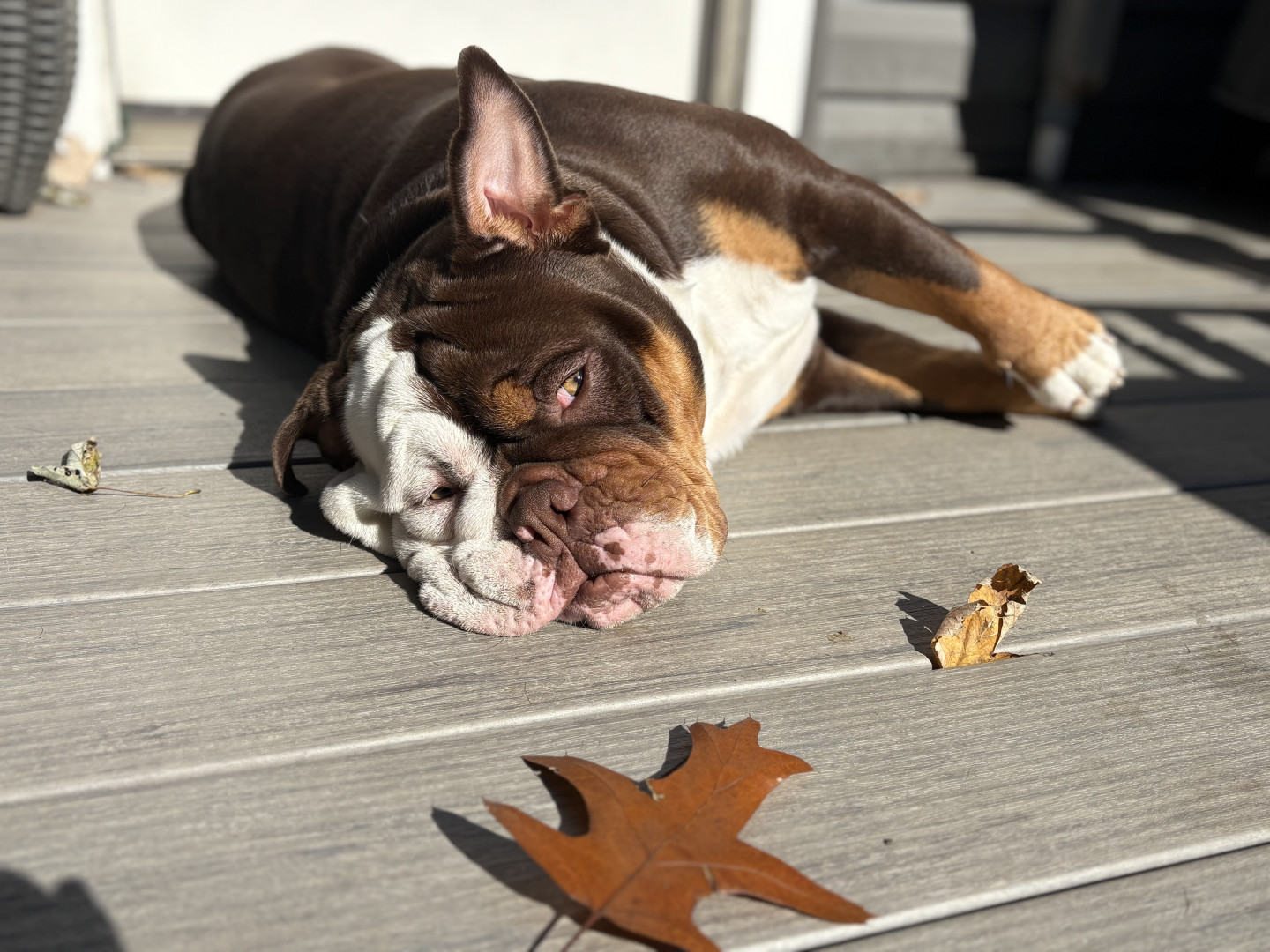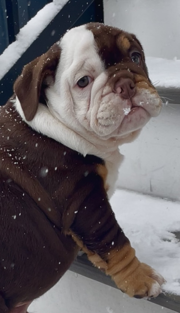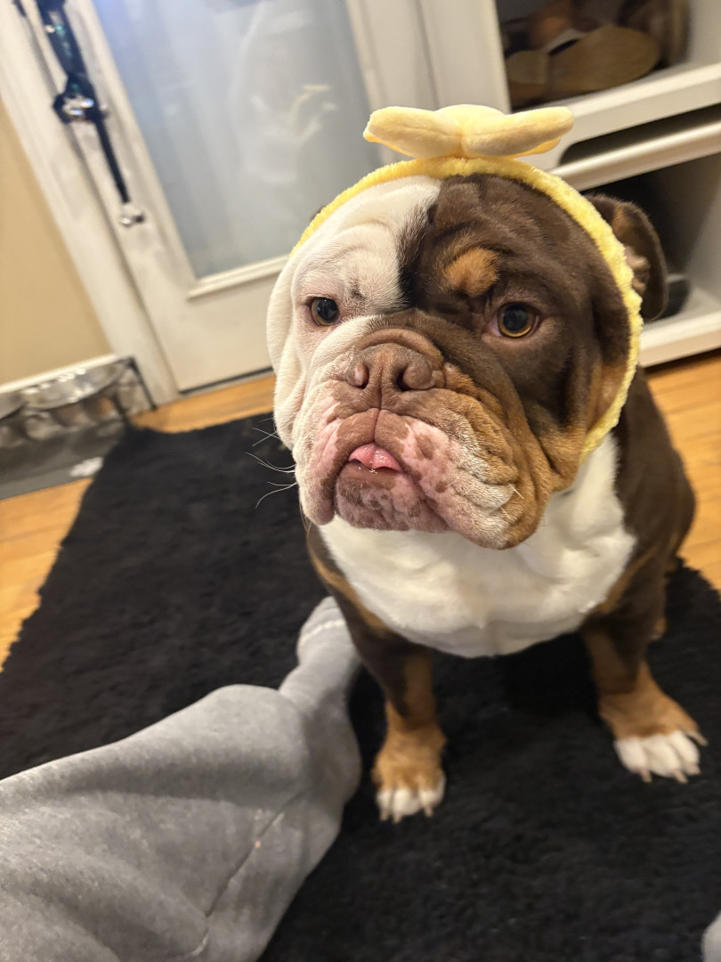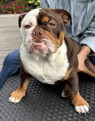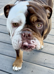 Biggs is an English Bulldog with a bold and stubborn personality! He is playful, loving, silly and never a dull moment in his company!