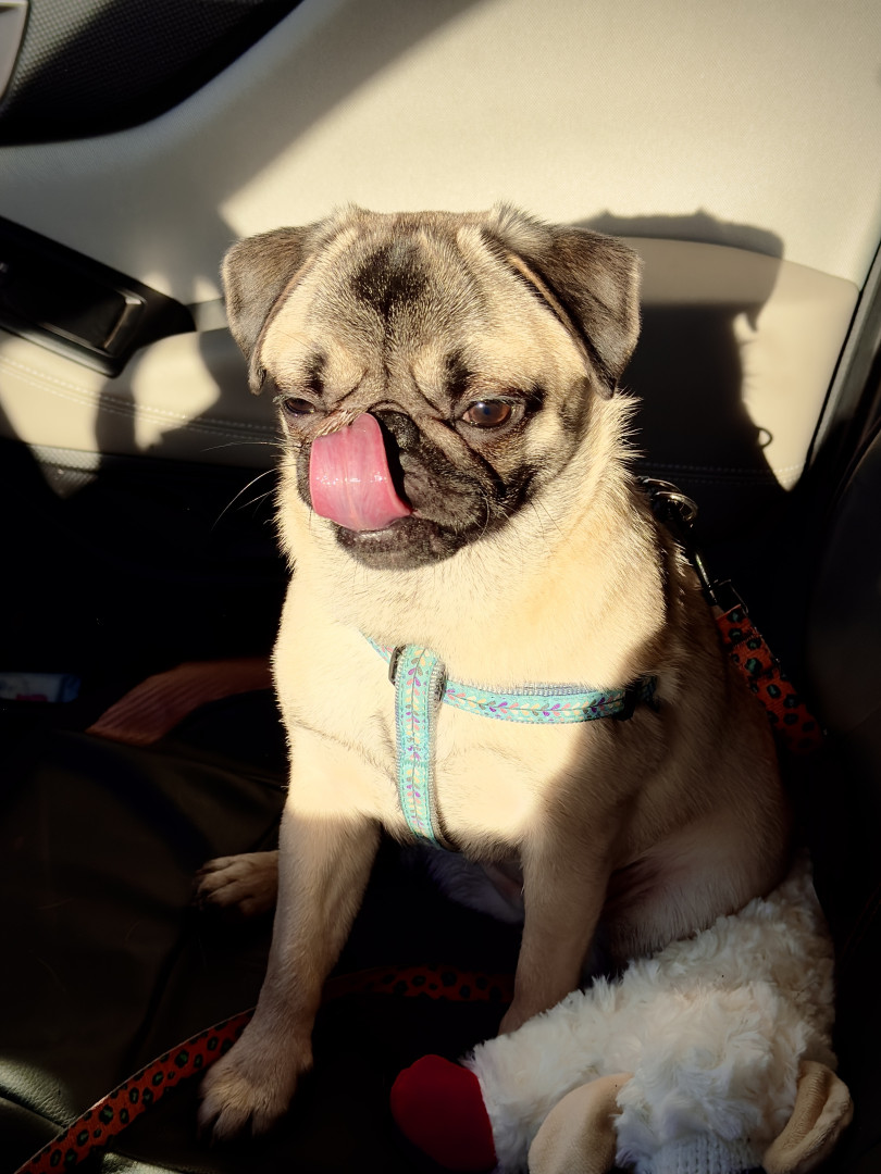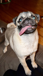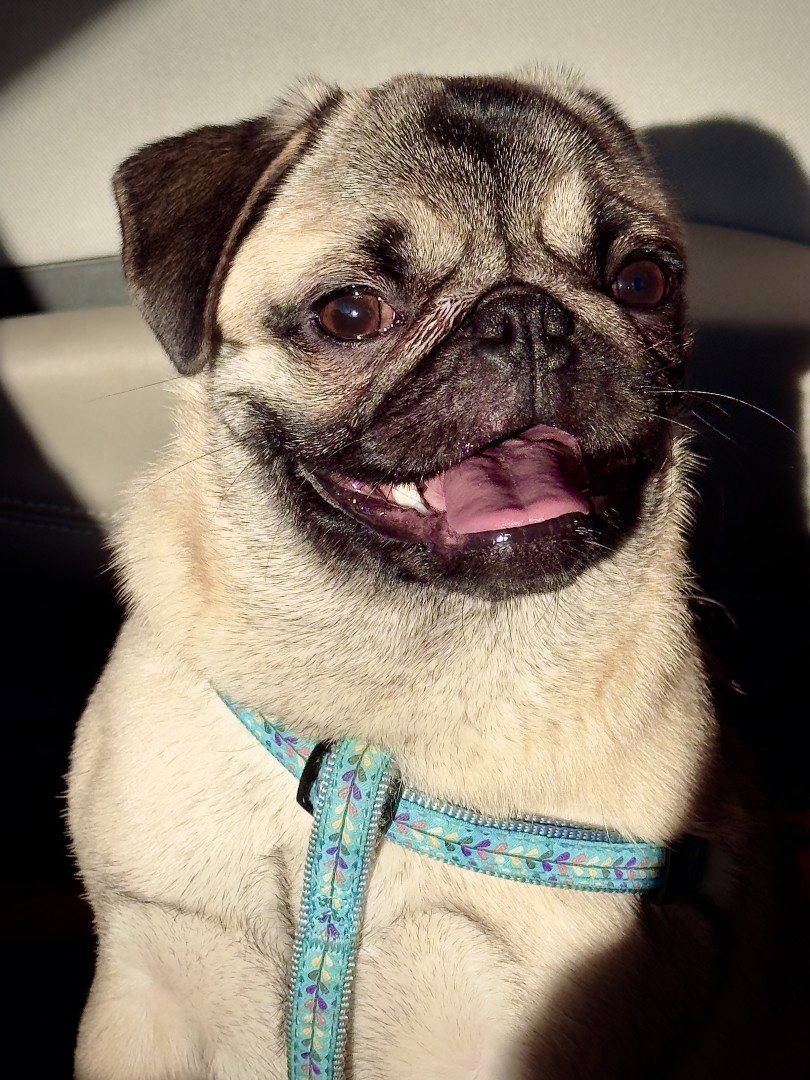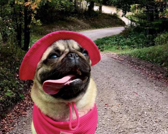 Bijou the Pug on Facebook! Just a happy little lady who loves hikes, pizza, playing with kids, snuggling & staring at you with loveđź’–