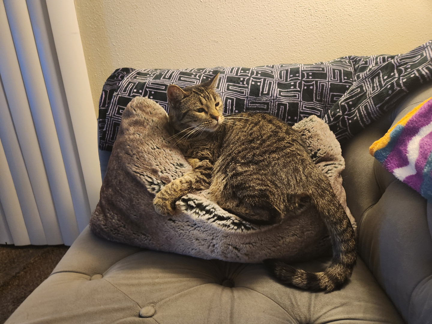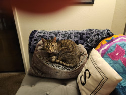 If Bilbo worked in an office, her trait would be falling asleep in a meeting. She sleeps on the back of the couch and falls off. Every.time.