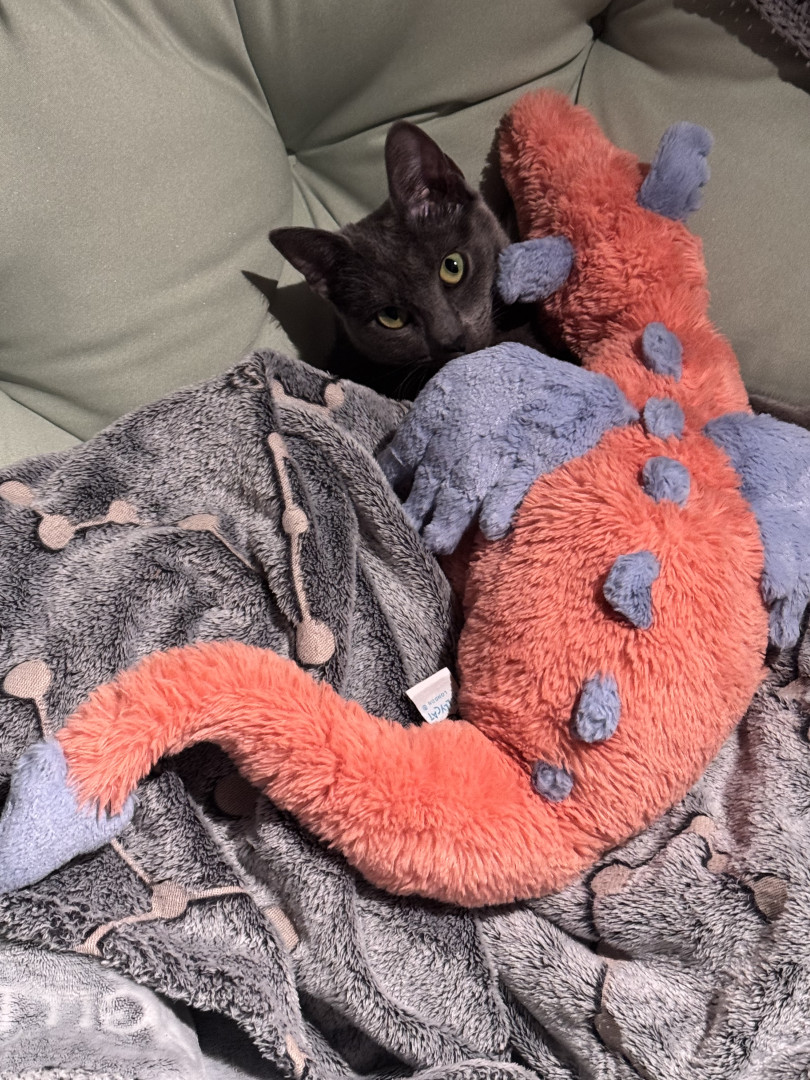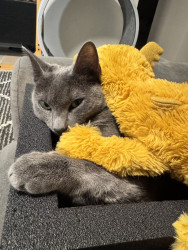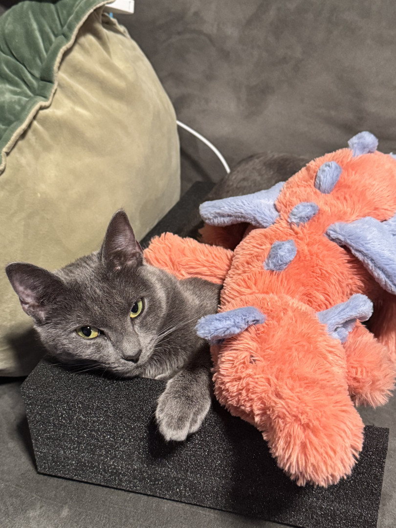 Birdie was found as a very sick 3 week old kitten outside of a gas station, but you better not tell her that. She definitely believes that she hails directly from the Russian oligarchies line of Russian Blues. Birdie believes that being America’s Favorite cat is her first step to complete world domination.