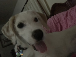 The way she loves me and other people! She never meets a stranger and loves loves children! As soon as she sees a child her head goes to the floor, butt in the air and her tail is going 90mph She hugs my neck everyday,all day, and when she sits beside me she has her paw in my hand. I say I rescued her but really she rescued me! I love her so much!
