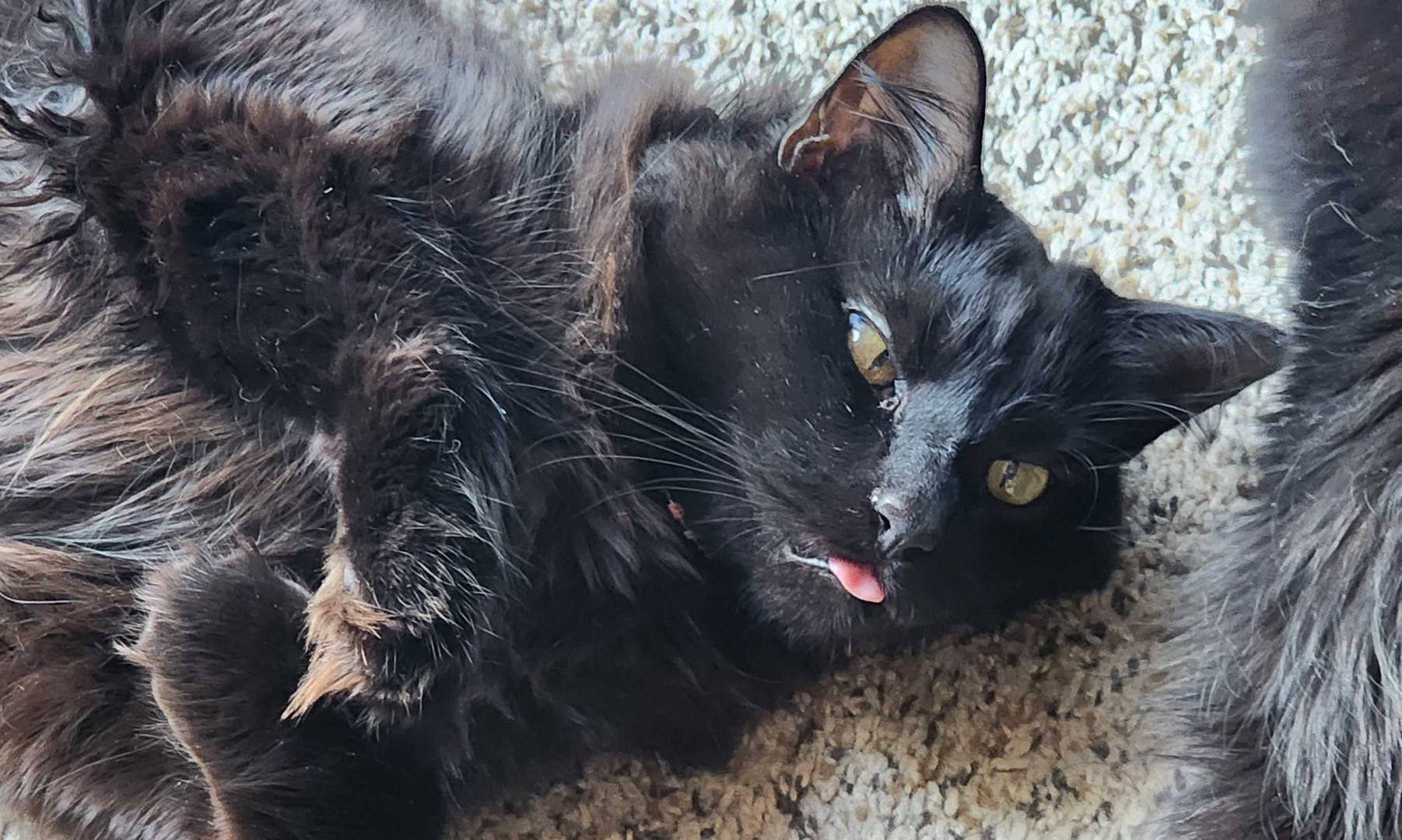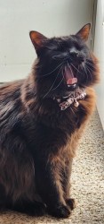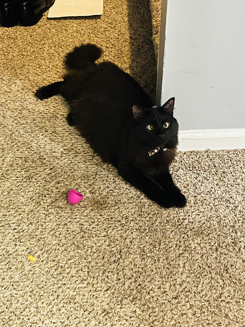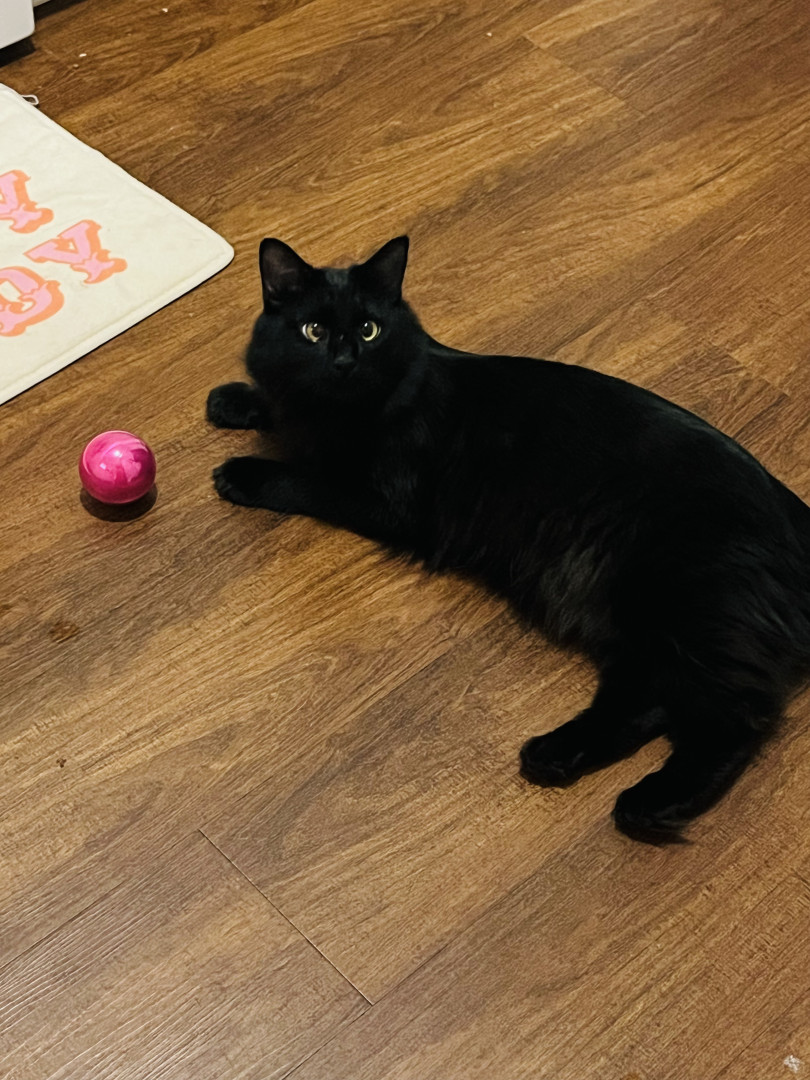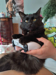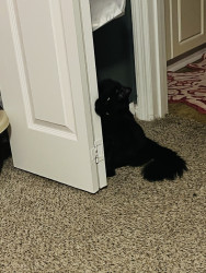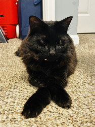 Biscuit is a 2 yr old long haired black rag doll with crossed eyes and a big heart! Scoop him up and he'll lay in your arms like a baby!