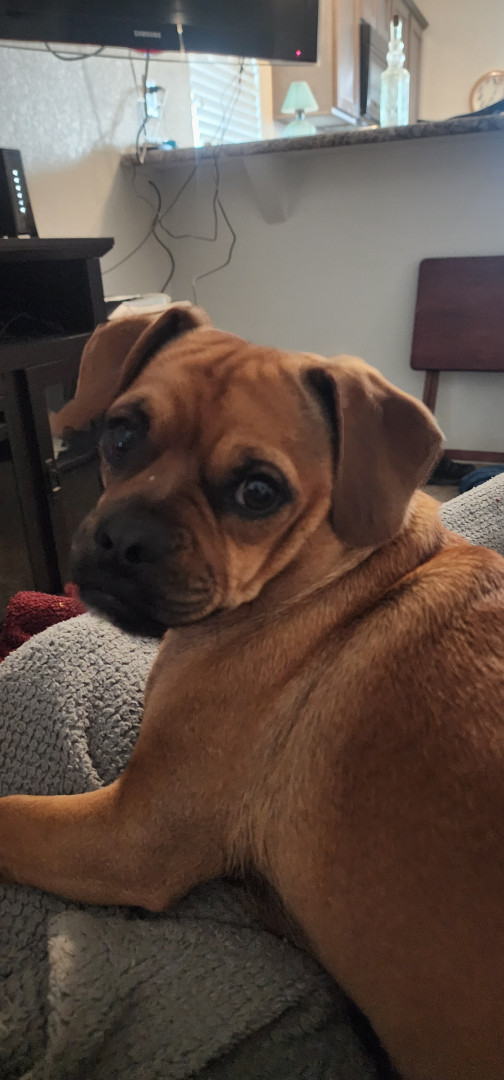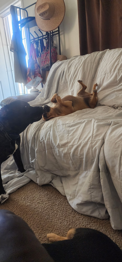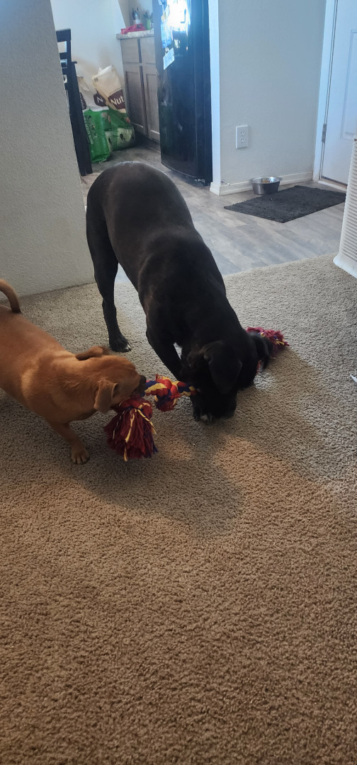 She holds all her emotions in her face. She has a big brother and loves to play With him. He is a Pitbull Mastive
