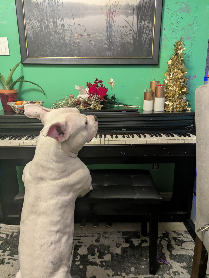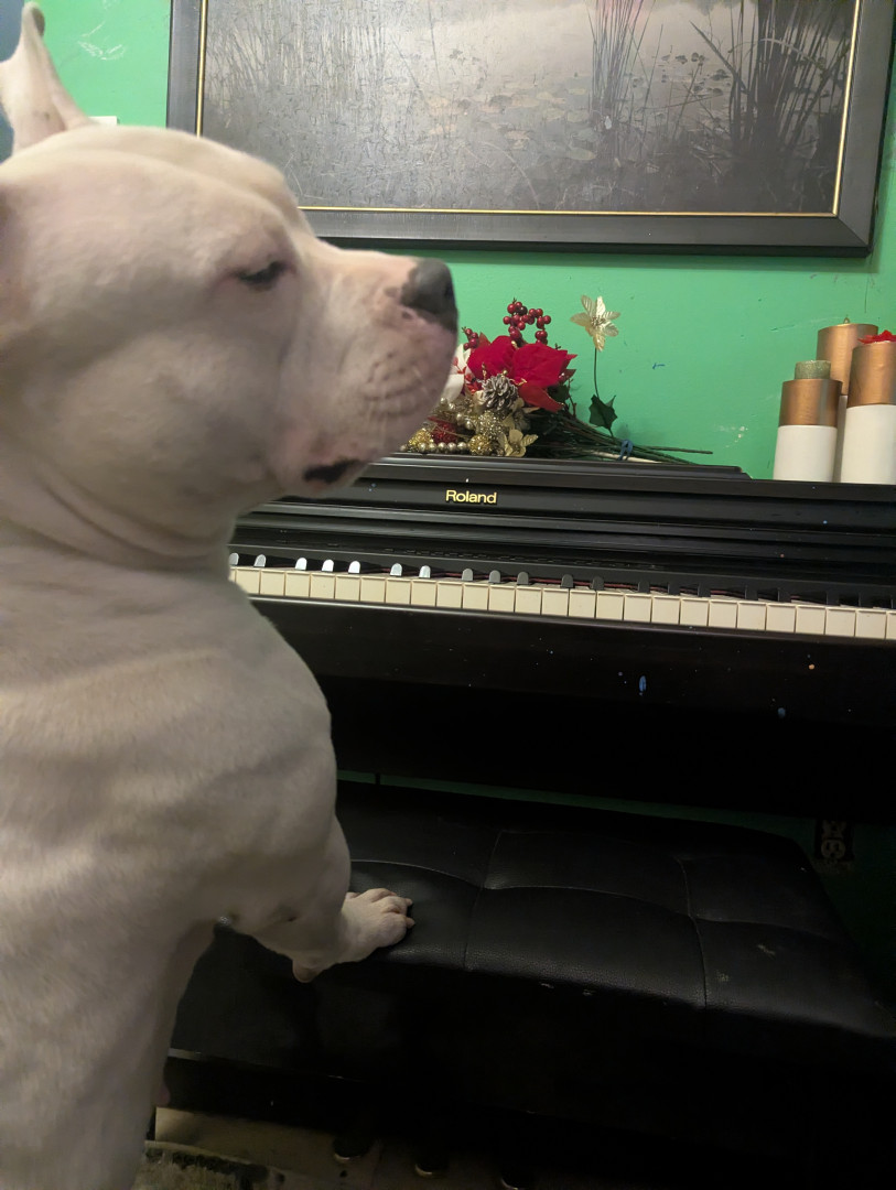 Blanca's most unique quality is she often , when cold mostly,& had enough backyard time she will begin knocking at the back door with her paws hitting the door with a small thump and sliding her nails down over and over as if to knock on the door as she seen everyone else do! I often wonder if she knows she's a dog haha. She also enjoys her bath time and loves playing hide and go seek!