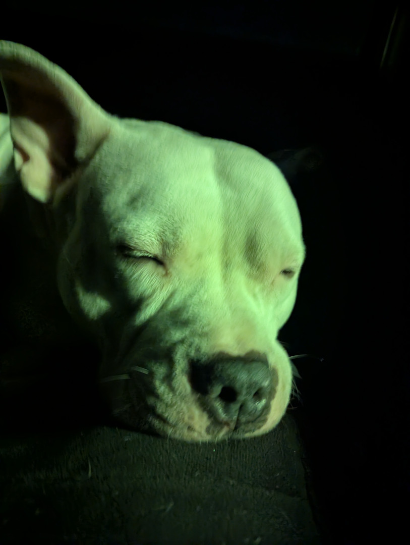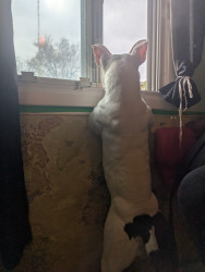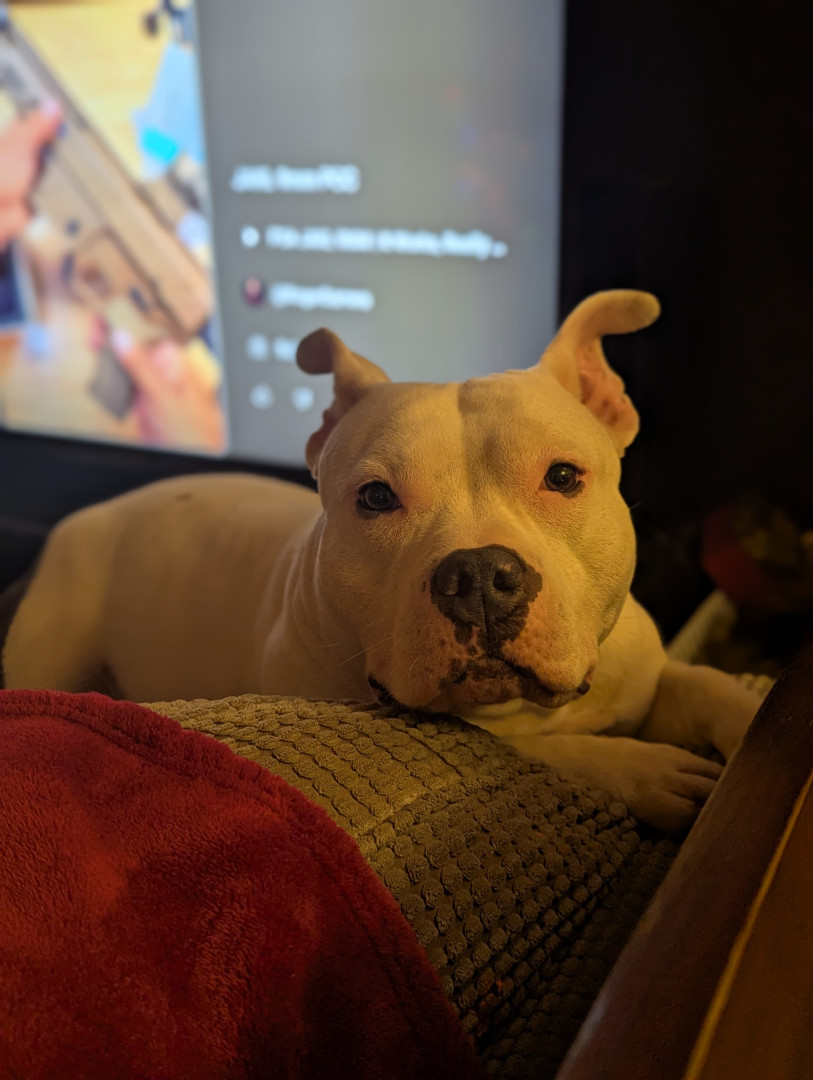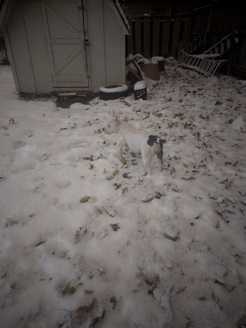 Blanca is a pocket bully. She is just over a year old and full of life! She loves making friends with cats and hopping in the snow!