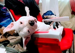 Blanca loves her mini tire and lays chip squeaky toy. She has cravings for treats but enjoys them most when handed to her ever so gently. Ice in her water is also a fav of Blanca's. She enjoys eating the snow as she runs in it and begging strips tasting like cheesy bacon will always win her nose over!