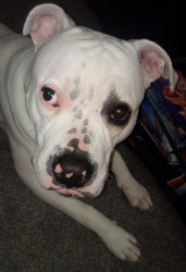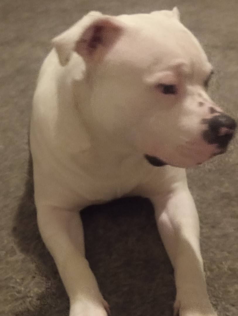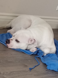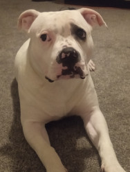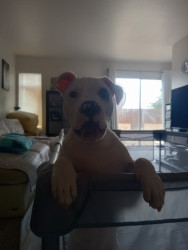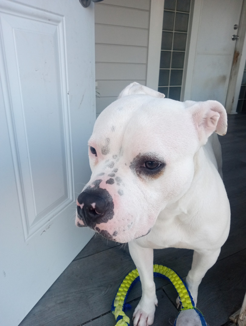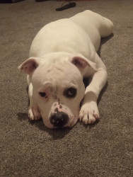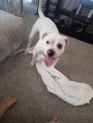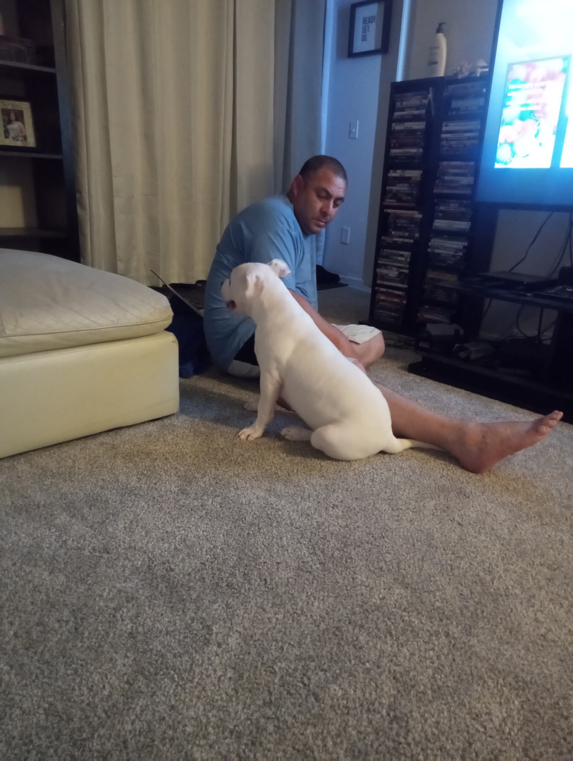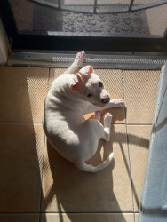 Blanco is amazing in every way and when it comes to kids he knows to be gentle and so nice never rough and loves attention he likes to play all the time Blanco is such a sweetheart I've never met a pet ๐ถ๐ like him he's won my heart completely he's my bestfriend the most loyal by my side he's my lil white angel ๐ he's so cute with a round patch around his left eye