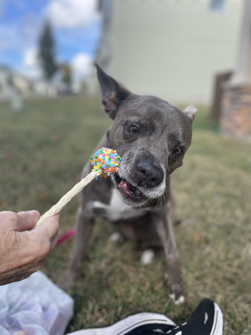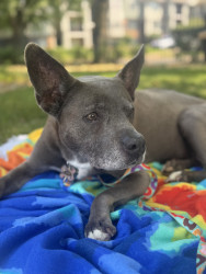 Receive Text UpdatesFavorite toy is a stuffed unicorn and a tennis ball! Favorite treat is sweet potato wrapped in chicken and peanut butter! When she receives her subdermal fluids every 3 days for her kidney disease, she gets a special rawhide because the process is stressful for her.