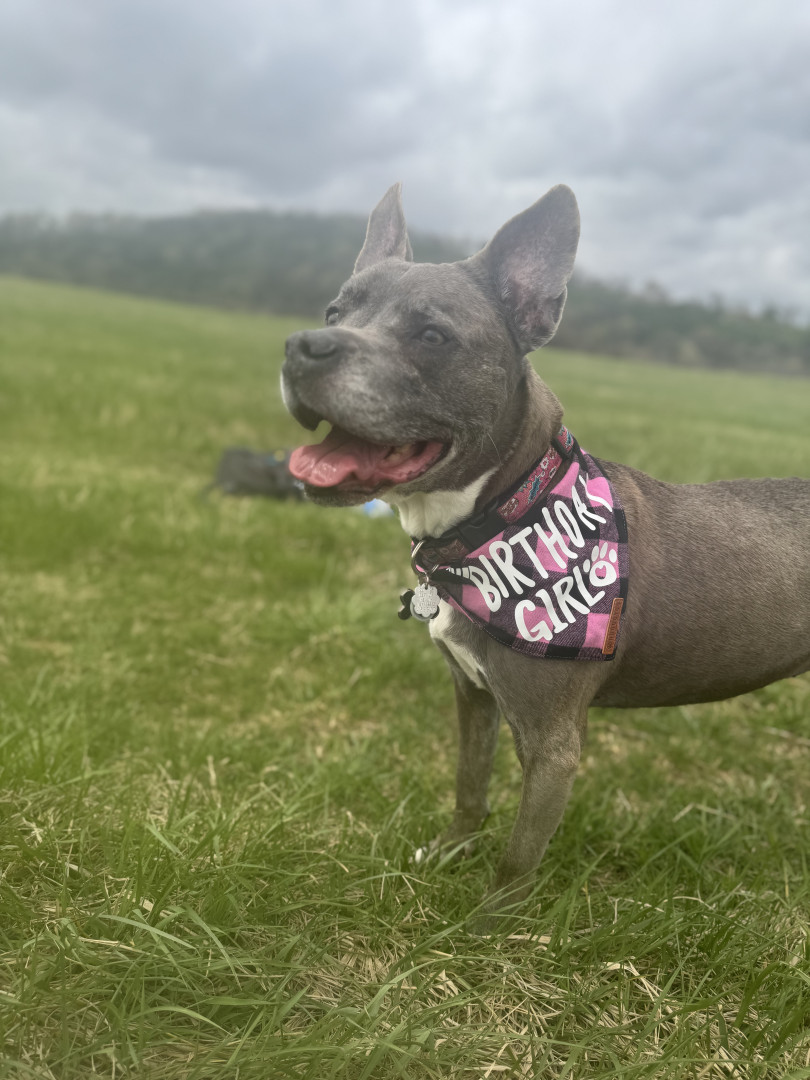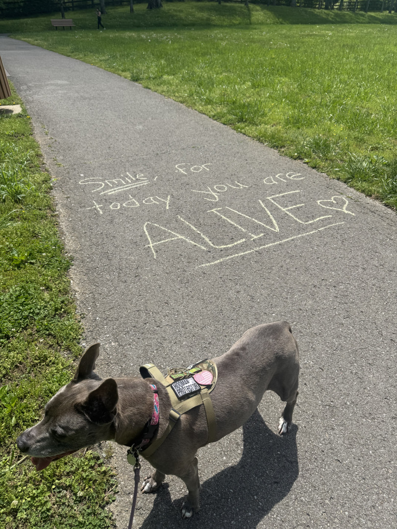 Blau is my hero. She stood by me through some of the darkest moments of my life and helped save me simply by being who she is. She’s a retired service dog with the kindest, gentlest soul. I was there the day she was born, and from that moment she became family. Blau is now in stage 3 chronic kidney disease, and her time with me is limited. She deserves as much recognition and remembrance as possible for the love, dedication, and healing she has given. She's been a godsend.