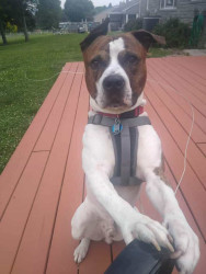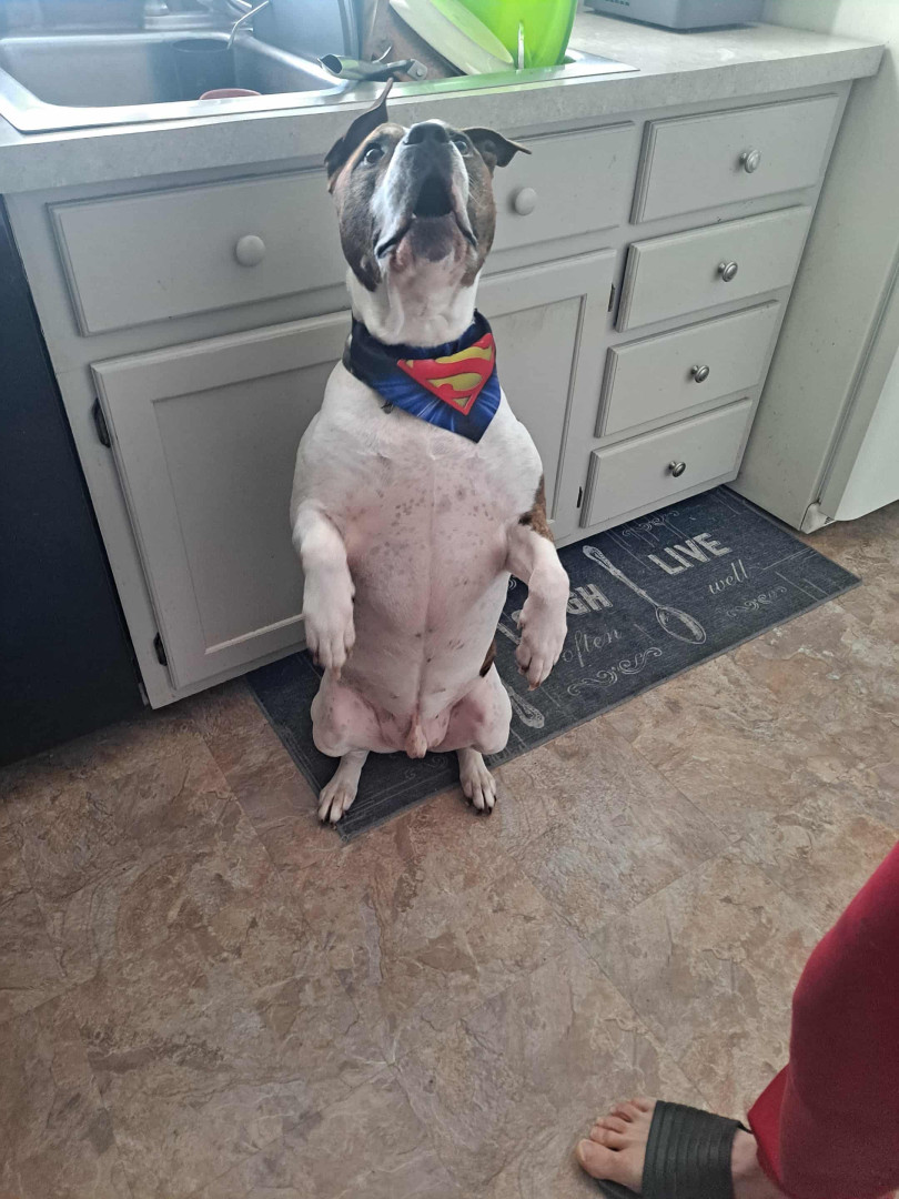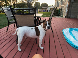 Blaze is a shaffordshire bull terrier, he's 7 years old. He's such a good boy, He's very loving, protective , and the sweetest b