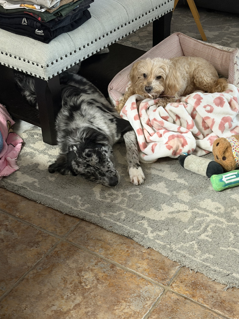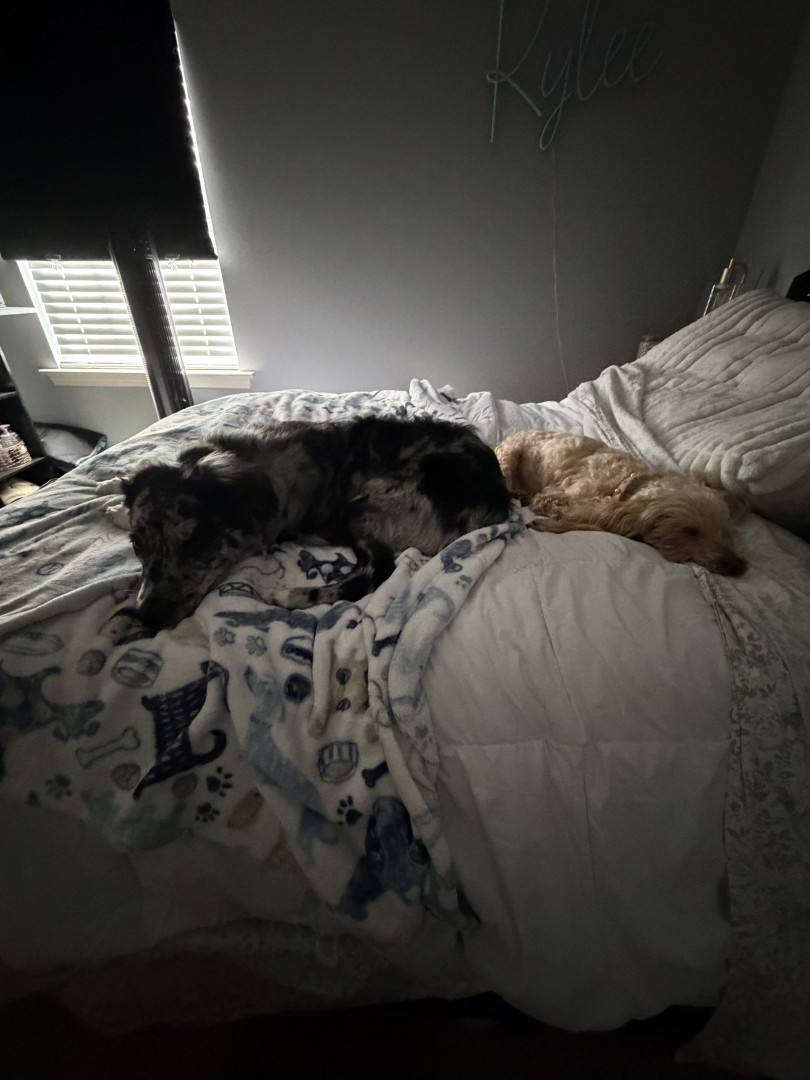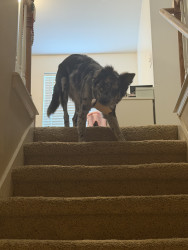 When he has to use the bathroom outside he runs full speed in circles until he thinks it the right time to use it😭 And when he runs his butt is almost on the ground because he runs so fast it reminds me of a horse. Bleu also is very scary since we got him from the pound and we have an ottoman that’s his favorite place to sleep and that he hides under since he was 6 months even though he is a little big now. lol. He will do everything he can under that small ottoman to the best of his abilities.