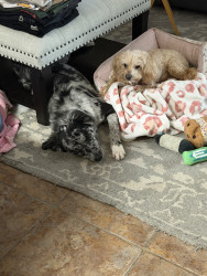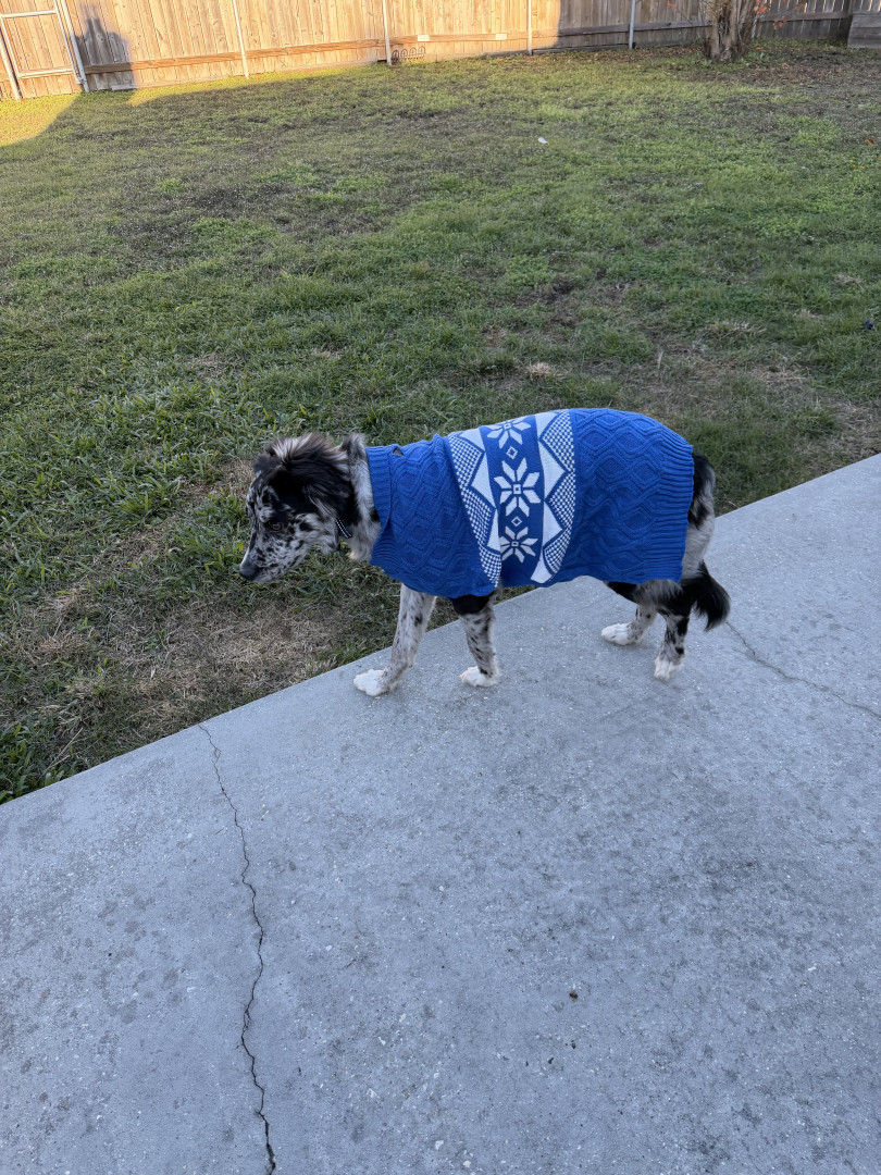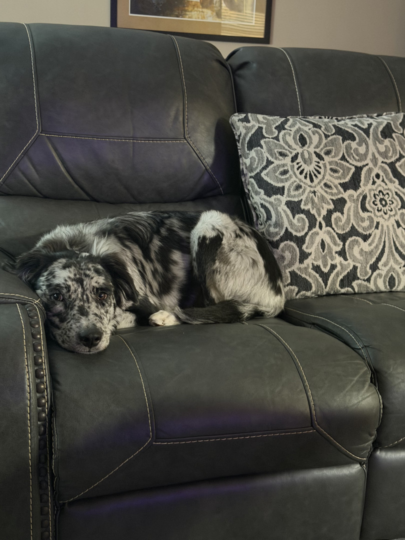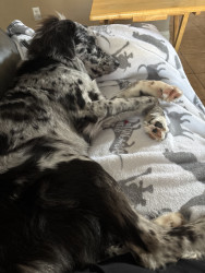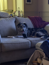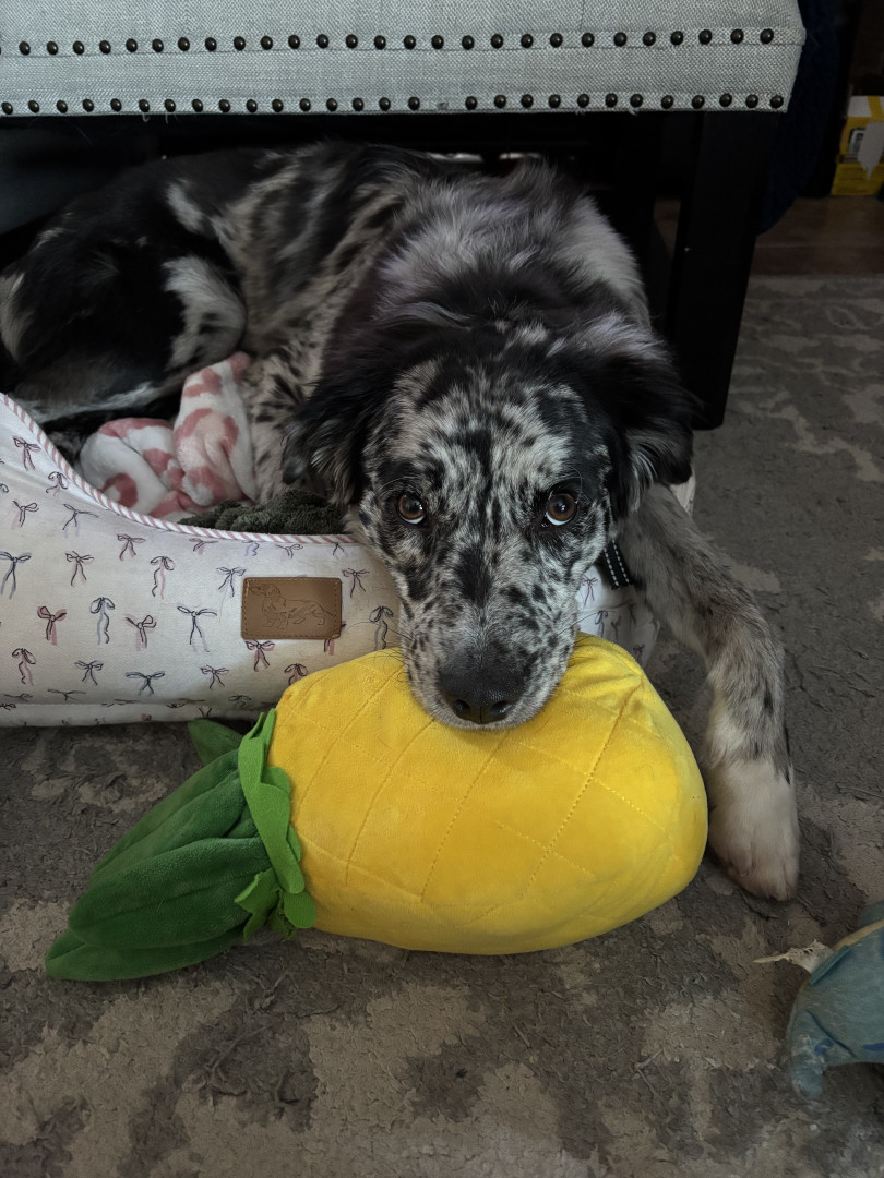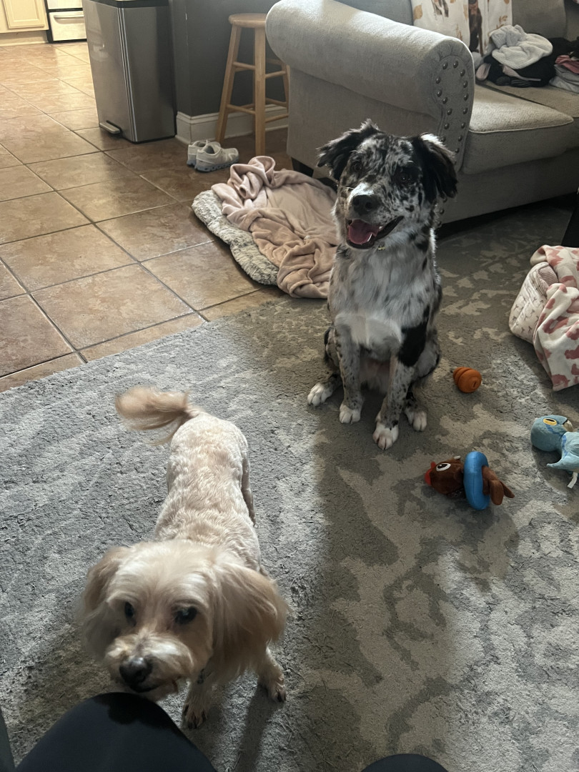 He is a very unique dog and Came from a shelter at 6 months and I had to teach him to be accepting of people, being that he is terrified of everything and everyone. He learned very fast and is the sweetest and silliest boy. Right now he is in the process of learning how to not run from the things that scare him. He loves animals and will play and cuddle for hours. He is now learning and loving how to walk on leash because as an Aussie he love to move around 24/7.