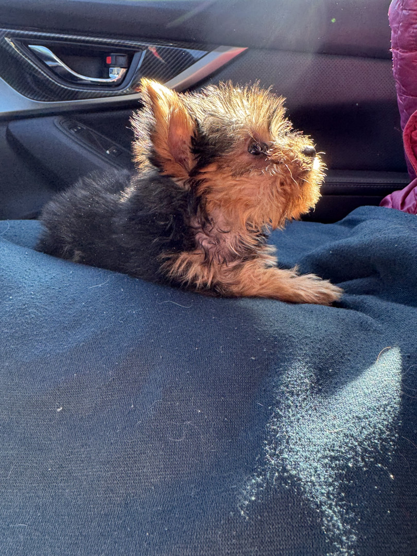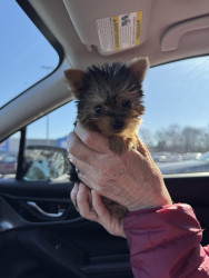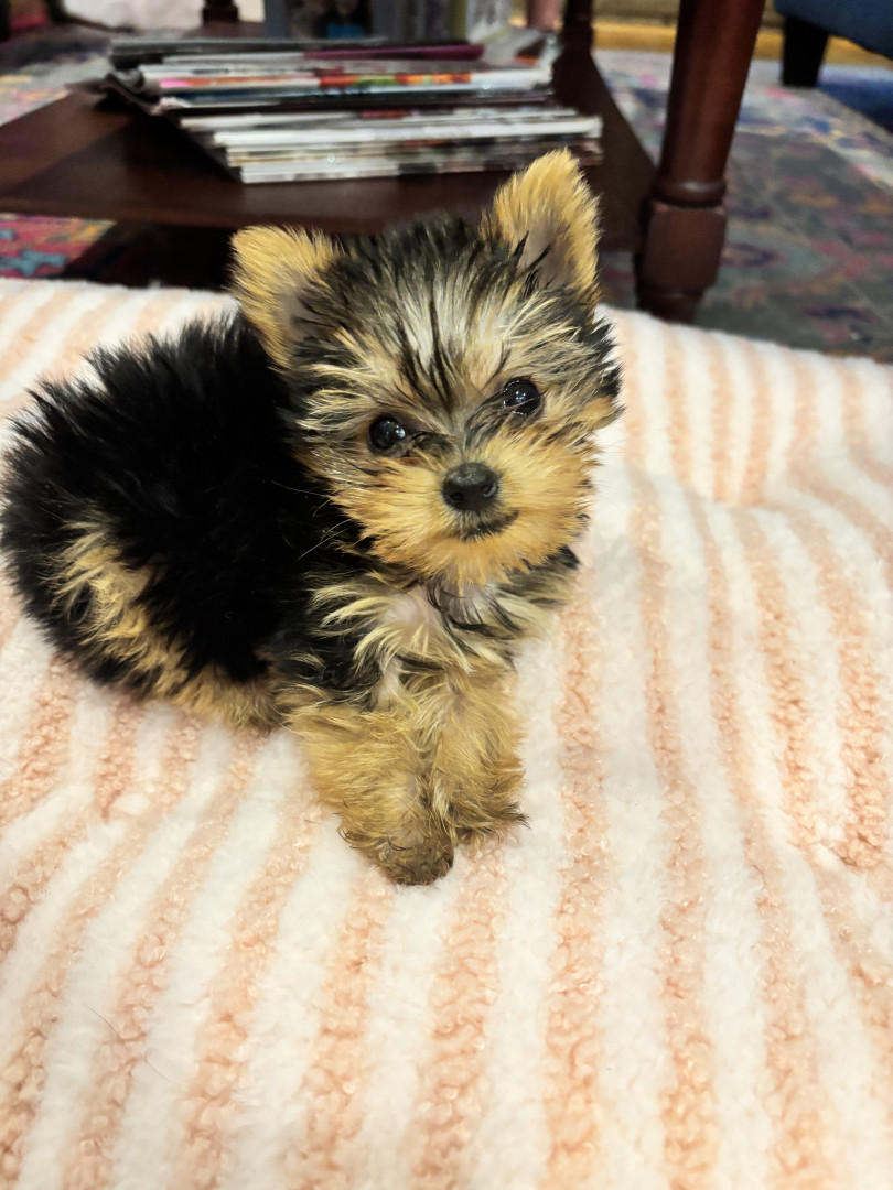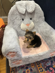Blossom falls right in line with the Yorkie qualities. She had a special personality, showing herself as fearless and confident. She is very lively, prancing around with a little hop in her step. She is very affectionate and calm. Always wants to be with you. Blossom 🌸 is every dog owners dream, cute and a joy to own.