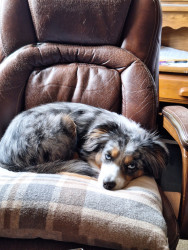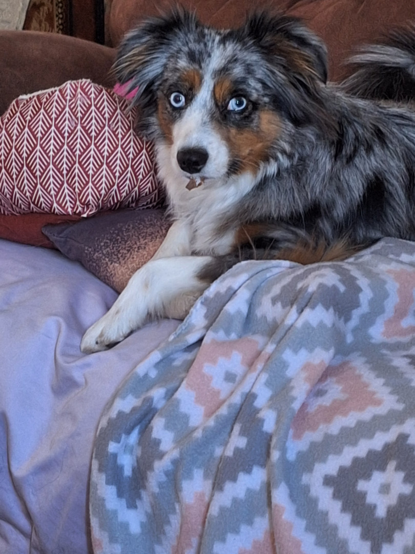 My Blu is a smart Lil guy. He is such a beautiful Aussie. His eyes , Blue Merle colors are so perfectly arranged around his eyes looks like he wears make up. . He is full blood Australian shepard good blood line. . He is spoilt. I think he deserves to be seen and his beauty shared with more people. Him being being chosen for Modern Dog Magazine, would be absolutly amazing... It would be such a huge honor!. Thank you for choosing Blu as a runner up.. .