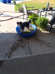 Blu is such a gentle Lil boy. He doesn't growl at other animals. He is very gentle. Loves to run and play .he is a teacher He teaches other pups how to play. He loves to show off his toys.. .