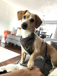 Learn MoreBlu doesn’t have a treat preference! Anything you give him will go into his mouth. He is a total foodie; he has equal respect for home cooked meals or snacks. His favorite playtime activity is tug a war. He prefers to play tuggy with his stuffies, as he really likes to through them around to show off his power. He also loves to find a discarded sock in the laundry bin. Or, take socks off your feet while you’re relaxing to remind you that you relax when he says you can relax.