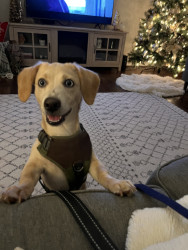 Blu loves to have fun! He loves all people and pets. He likes to rough house, steal a sock and bring it to you. His favorite game is tuggy!