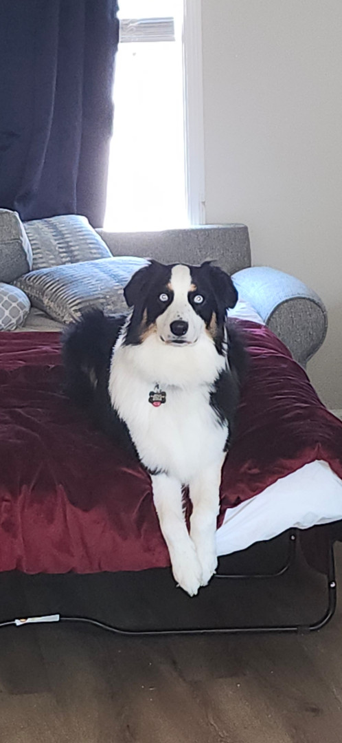 Blu is our Grand dog. He is adorable. He is almost 2 years old. Loves to play with other dogs. Just a Joy.
