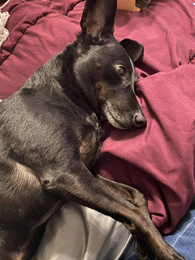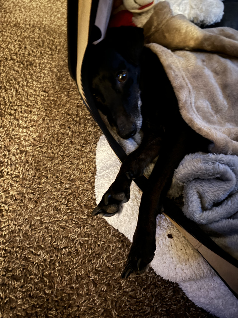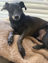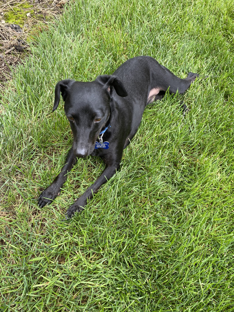 Blue is a rescued. He is a good guard dog. He is protective of me. He also loves the outdoors.You can find him soaking up the sun.
