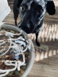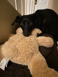 Receive Text UpdatesBlue loves his stuffed animal that is a moose. He sleeps and plays with it all the time. His go-to treat is the beef jerky sticks. He loves to clean his teeth with the dental sticks.