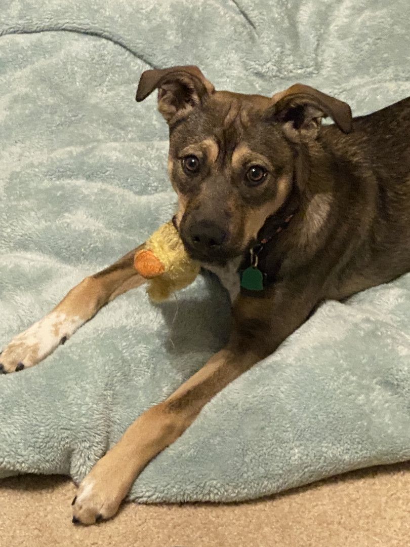 Learn MoreBlue’s favorite toy is his stuffed duck, a Christmas stocking gift he’s carefully protected ever since. He knows that if the stuffing comes out, the duck is gone, so he treats it gently. His favorite treat is duck jerky, homemade after a successful duck hunt, which makes it extra special to him.