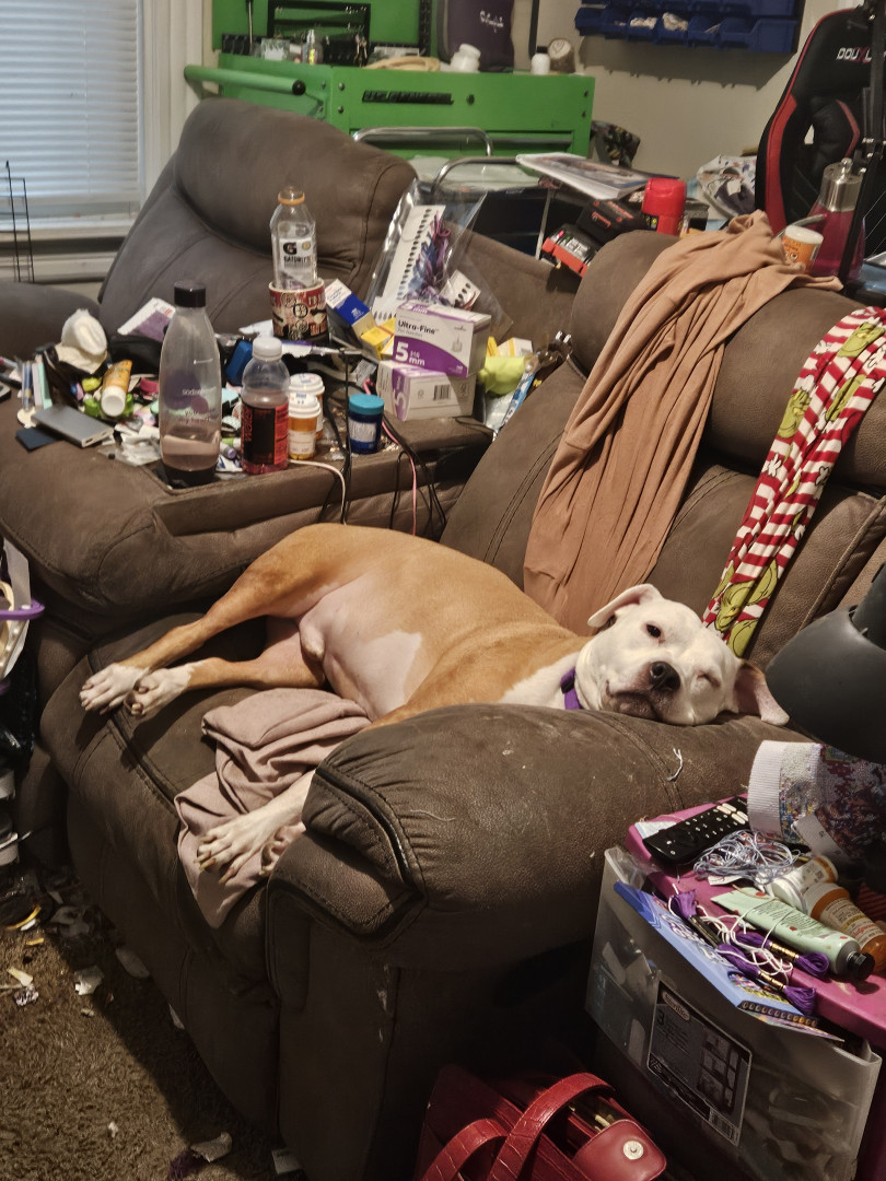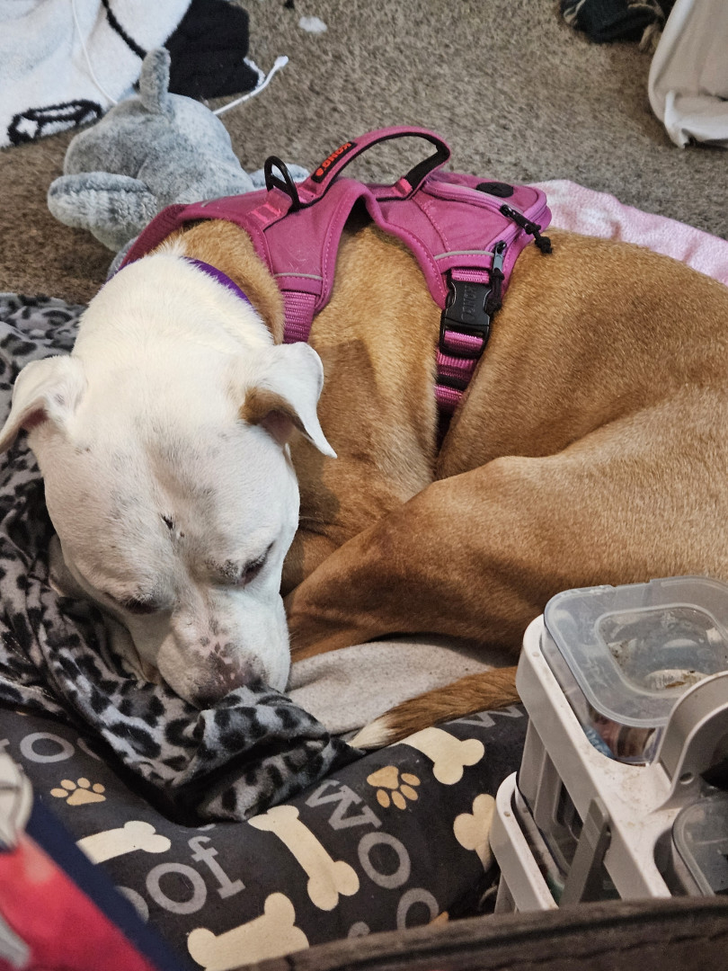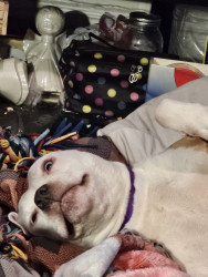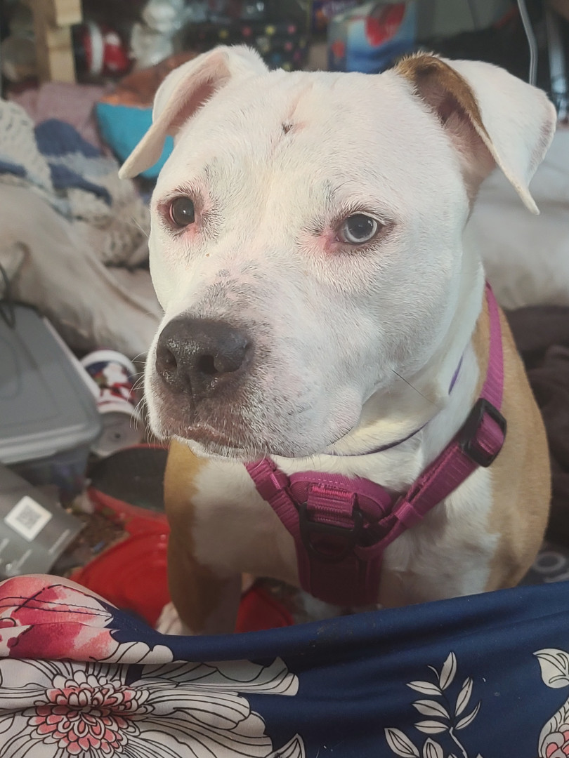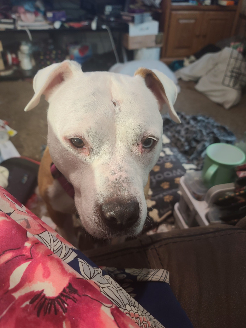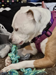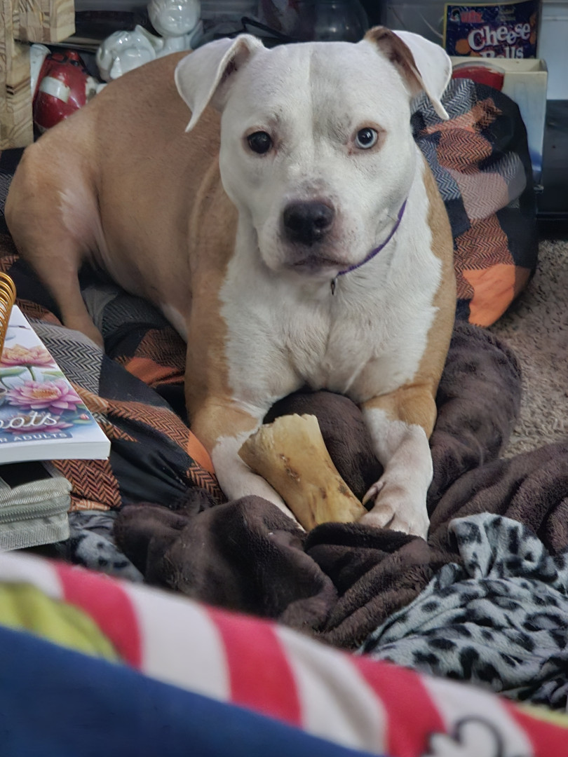 We rescused him from a shelter he had a hard life shelter was pleased that he came right to me. Its like he knew i was his forever home.