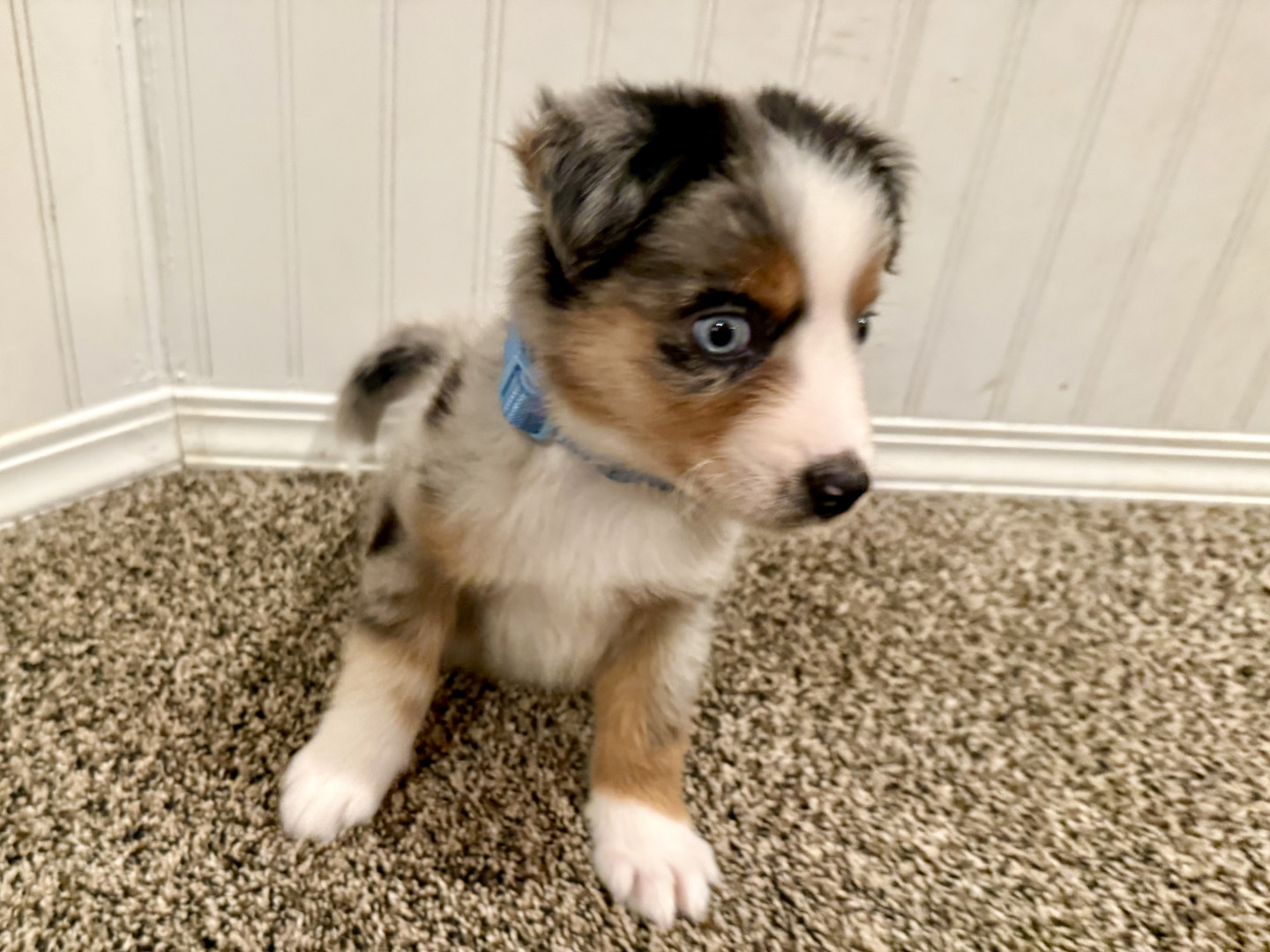 Blue is a Blue Merle Mini Aussie Shepherd. He’s 9 weeks old and the sweetest, cuddliest, smartest little guy.