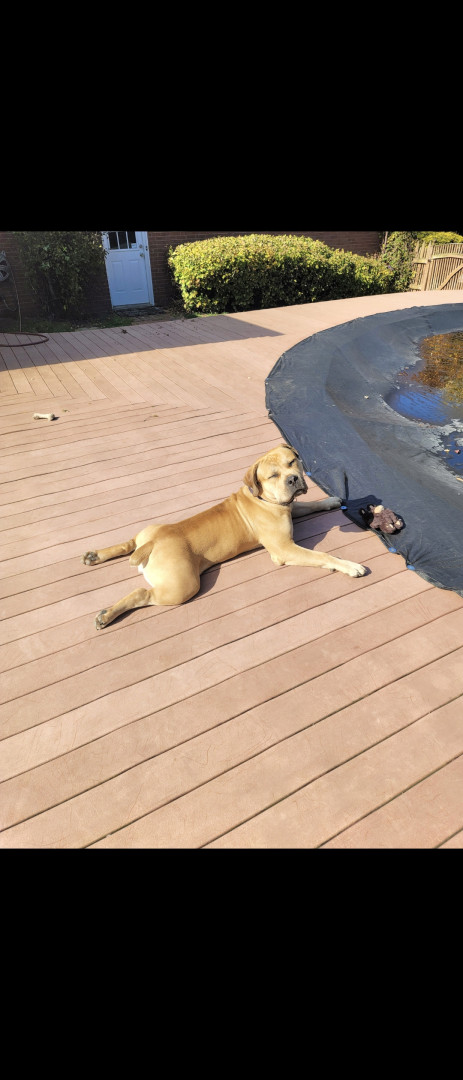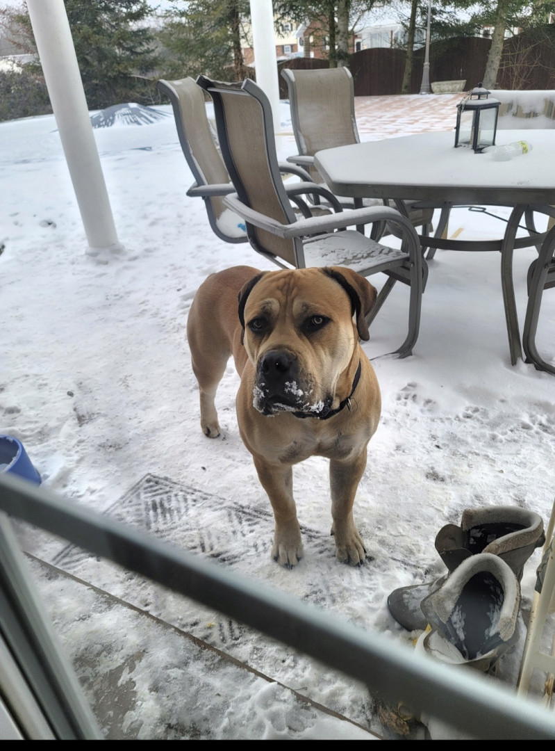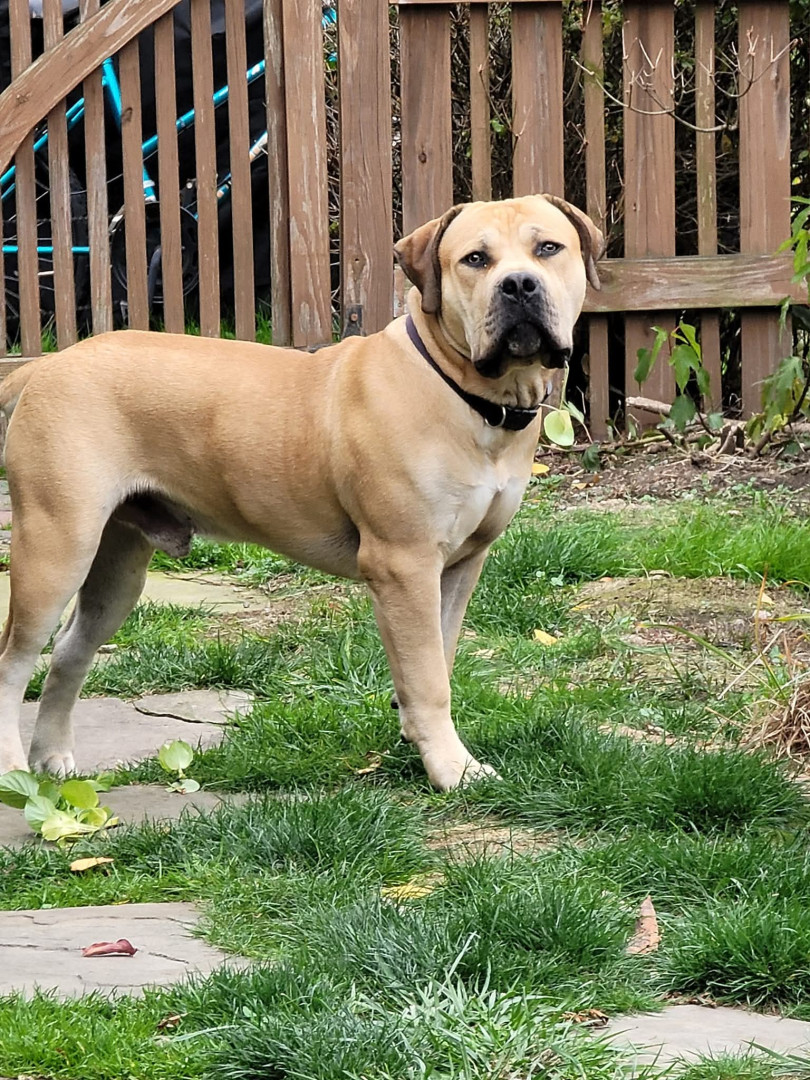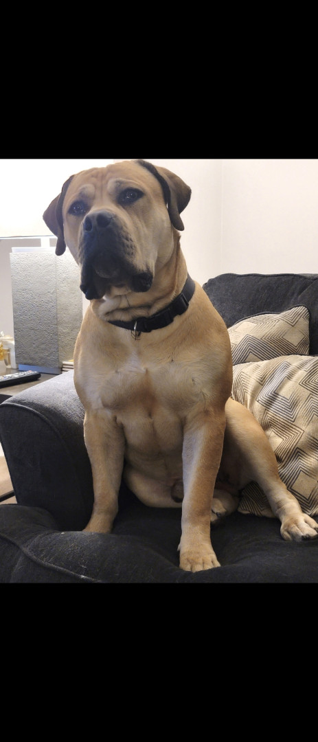 Blue is a boerboel. Fun loving protective. Loves his family and food