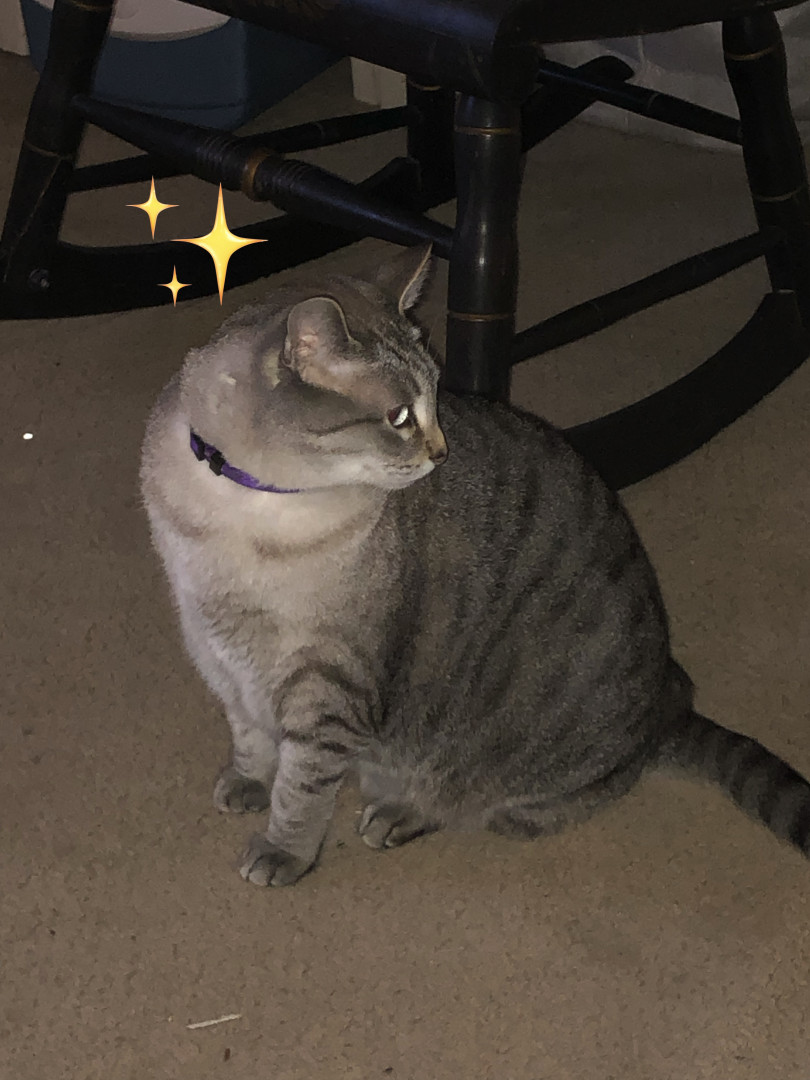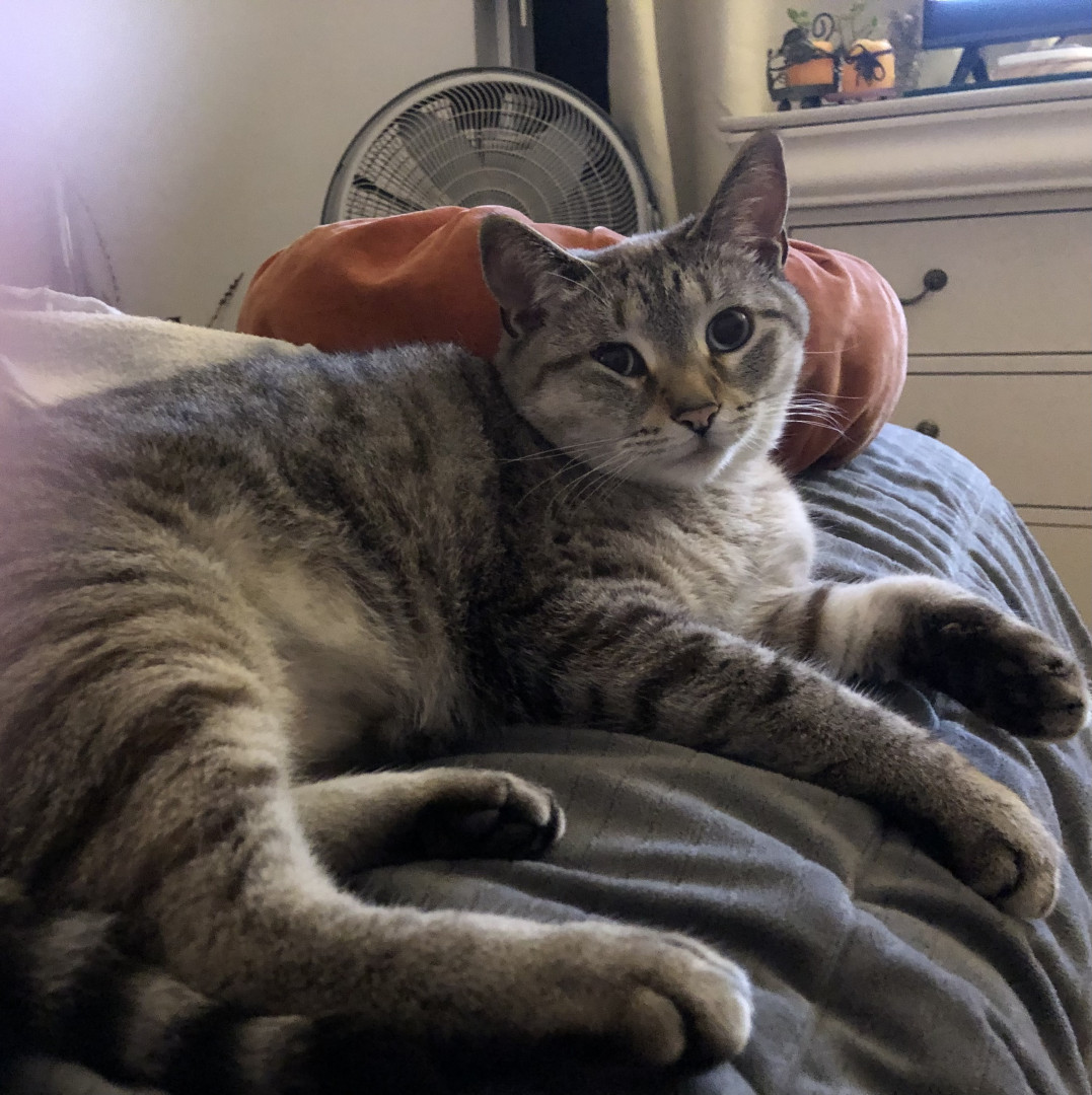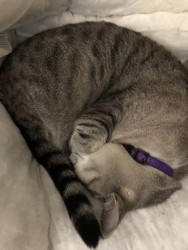 Bluffy is the sweetest Siamese mix, she loves to cuddle next to me in bed and loves playtime and her roomie cat Sophie.