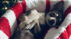 Whimzees alligators, this boy cannot get enough of those!! But he has a little Christmas teddy bear that is his comfort buddy, he takes with him everywhere and snuggles it to sleep.
