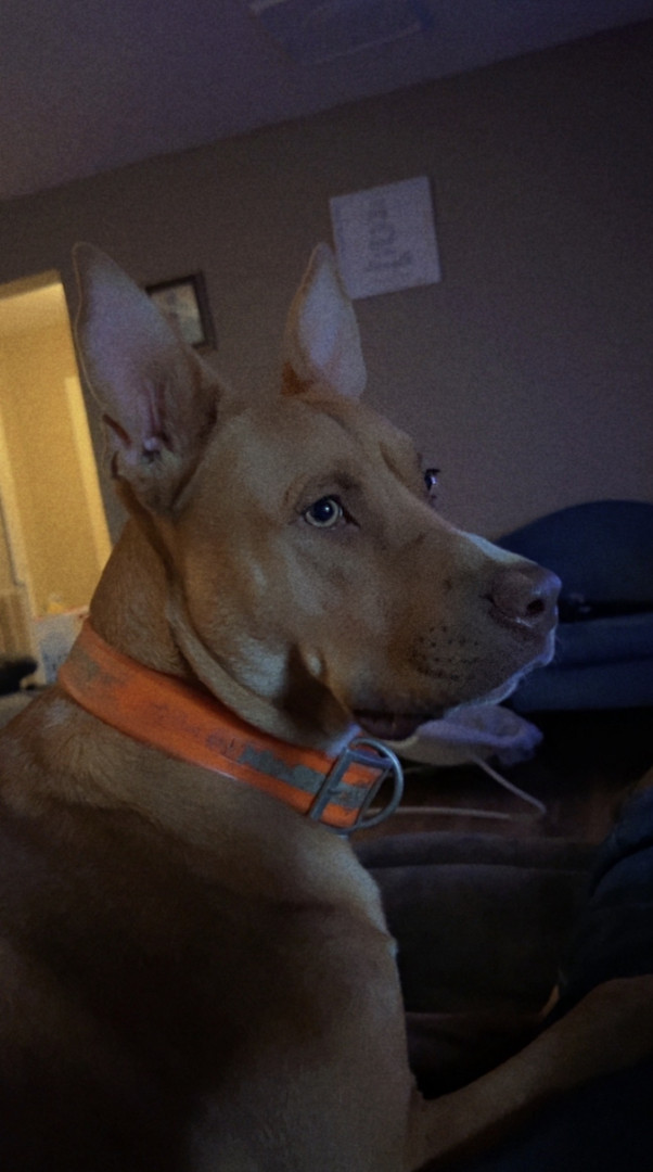 Bo is a blue pit red noes mix he is sweet loving funny dog really protective over our children and loves to lay on the back of the couch