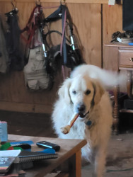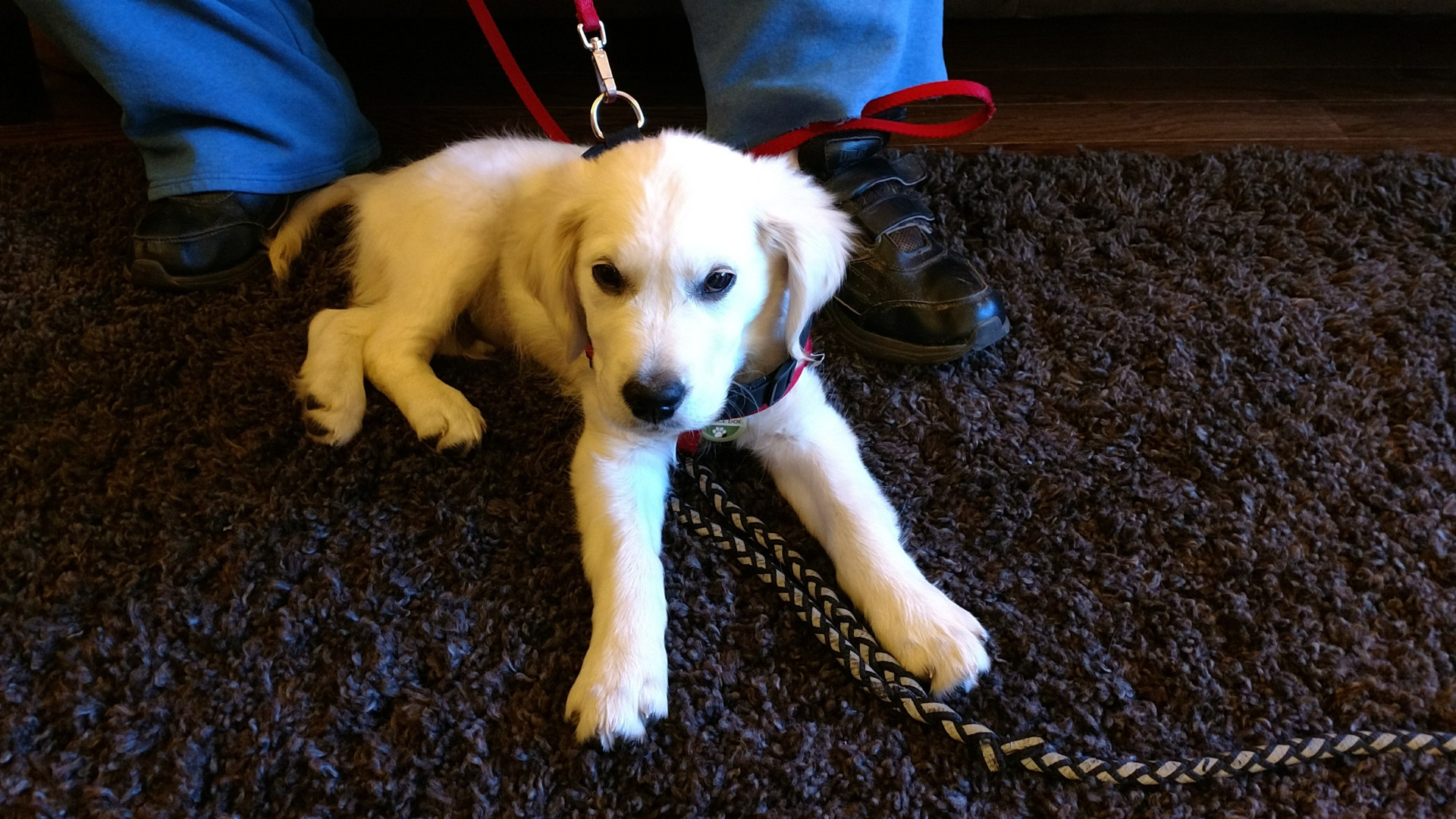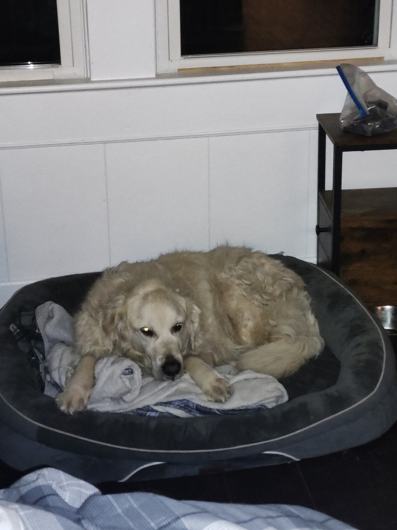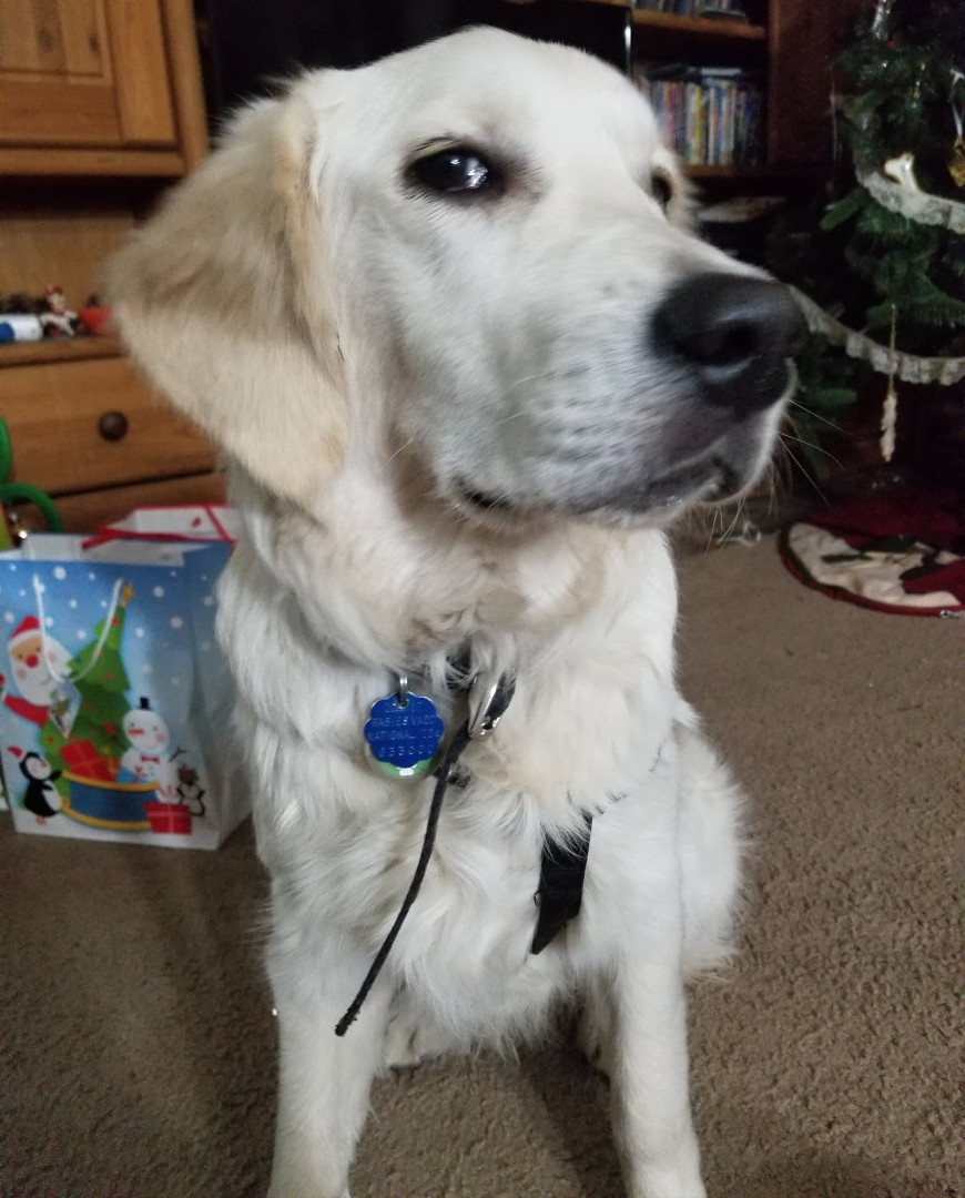 Boaz is an 8 year old English Cream Golden Retriever service dog. He is trained to help with my PTSD. He is a very kind and loving dog.