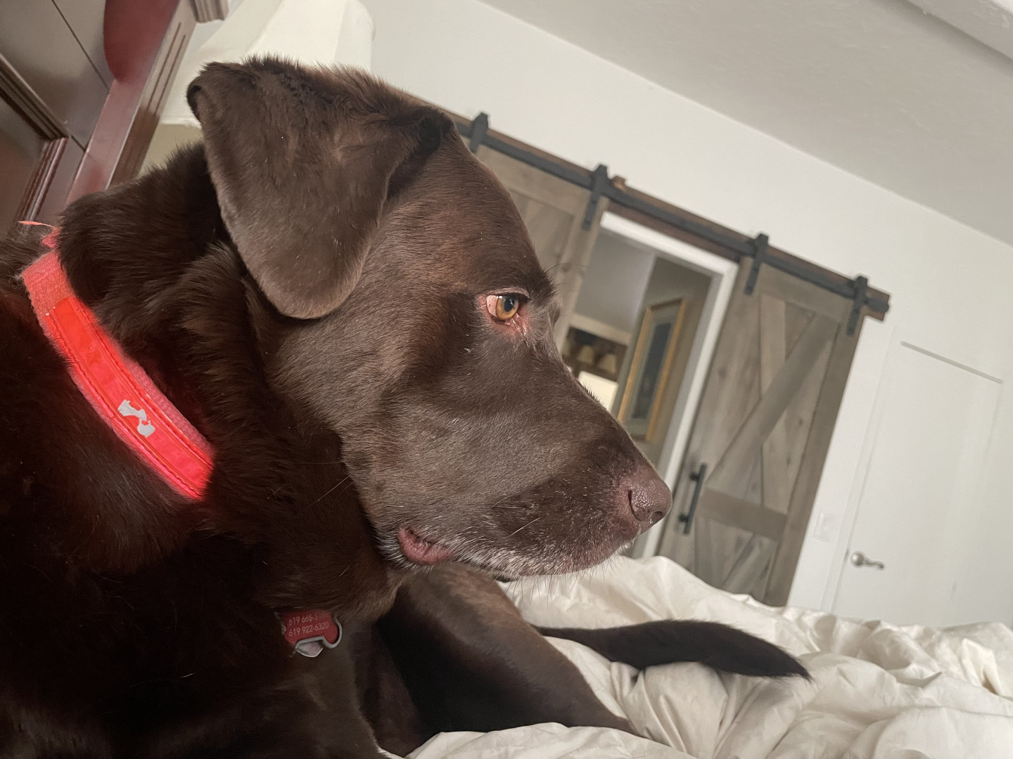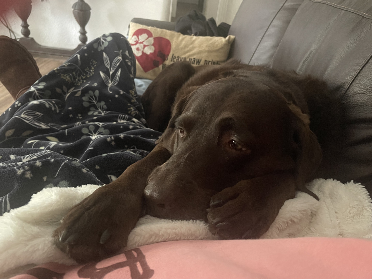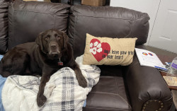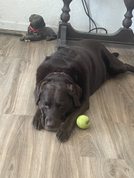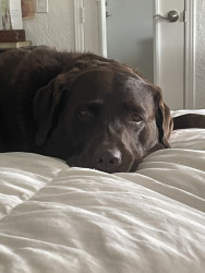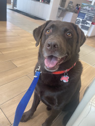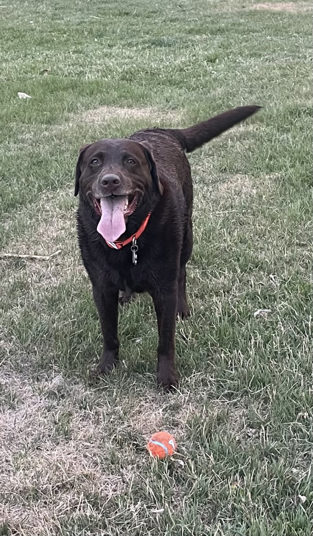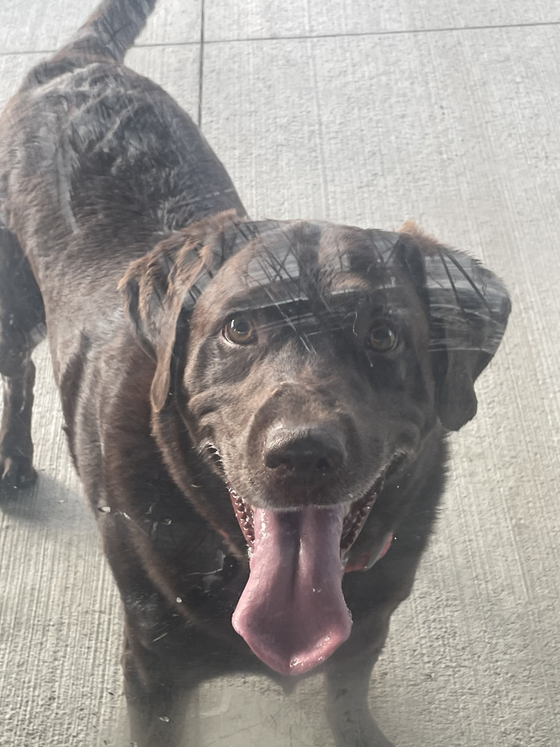 He is a rescue and has a lot of spunk in him. The cutest thing ever of course. He lost his buddy a year ago and loves attention and people. Chocolate labs definitely have the spunk in them. A great dog. 🐶