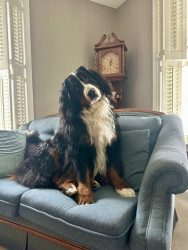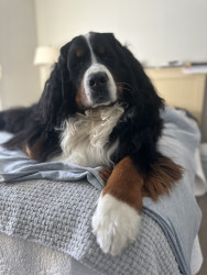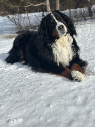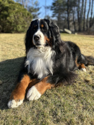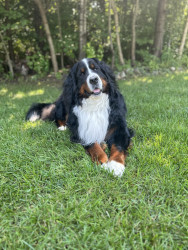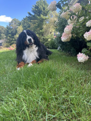 Bogie is the most gentle sweet soul with the best characteristics of a berner. Fiercely loyal, sensitive, stubborn, goofy/playful & handsome