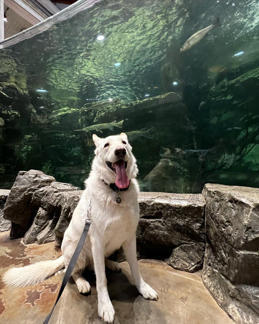 The best quality about Bolt is his big heart. He is the sweetest gentle giant and will get along with anyone and everyone! We go to stores all the time to make friends and no matter what Bolt always loves to say hello. He sometimes realizes his wolf-like size and makes the sweet decision to say hi by moseying his way up to new people. Not only that Bolt LOVES to go swimming. Rain or shine you can almost always find him in the water. And if you jump, in you’ll always find Bolt following along!