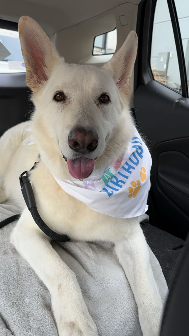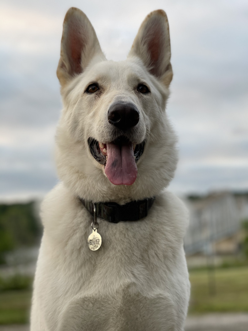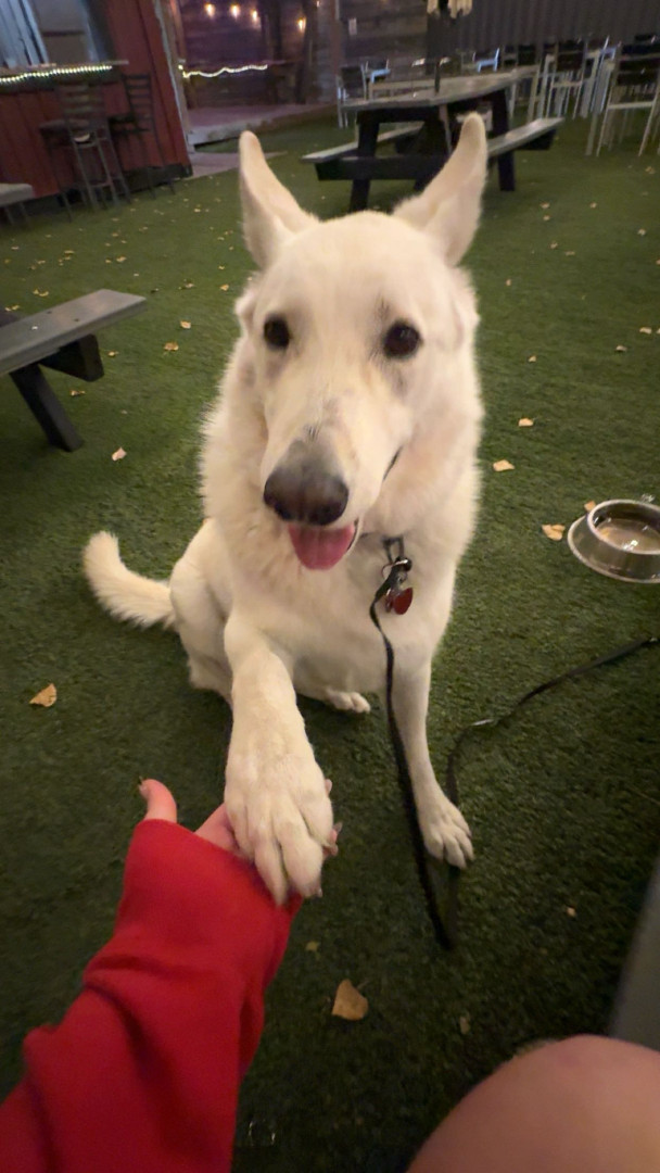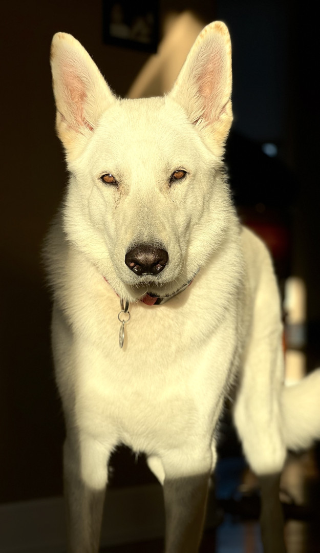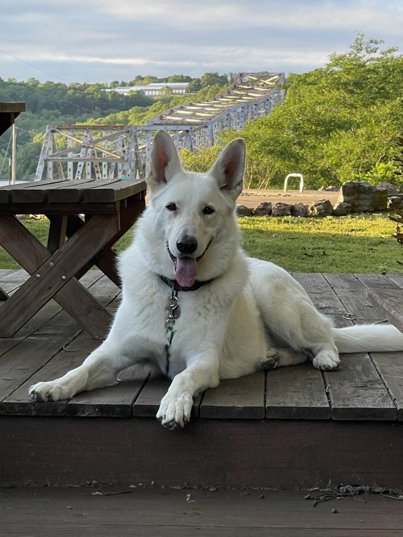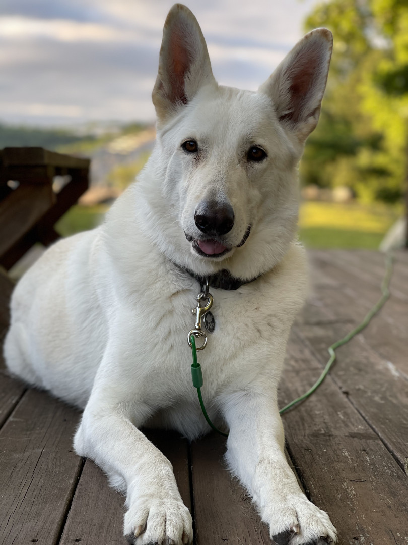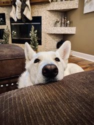 Bolt is a 110 lbs white german shepherd with a big heart. He is my best friend.