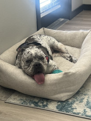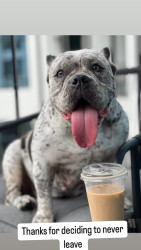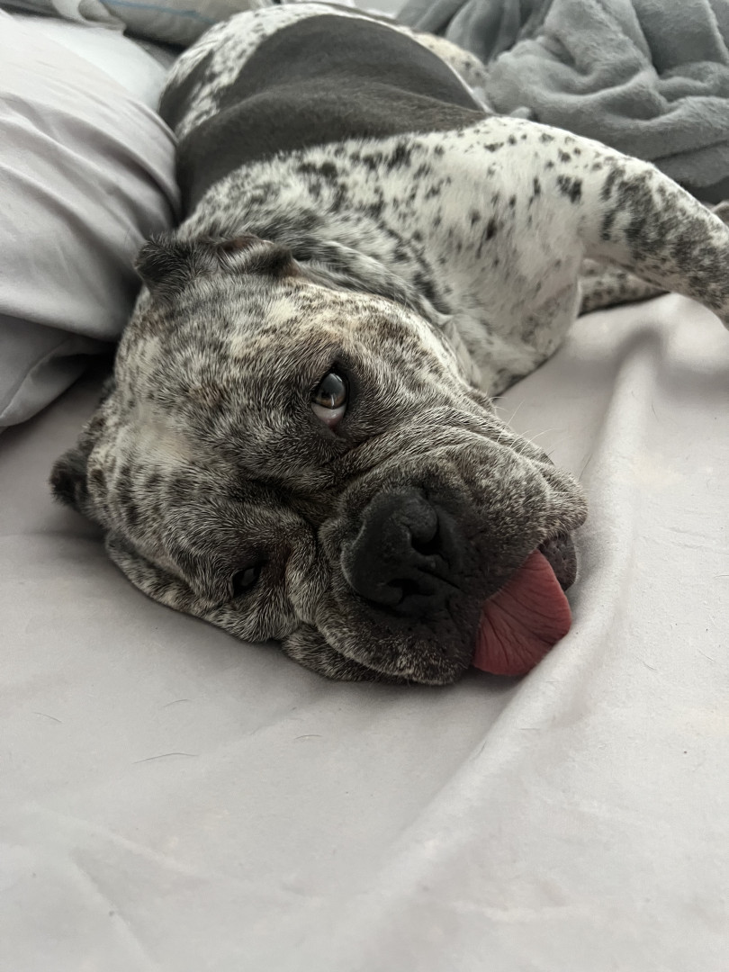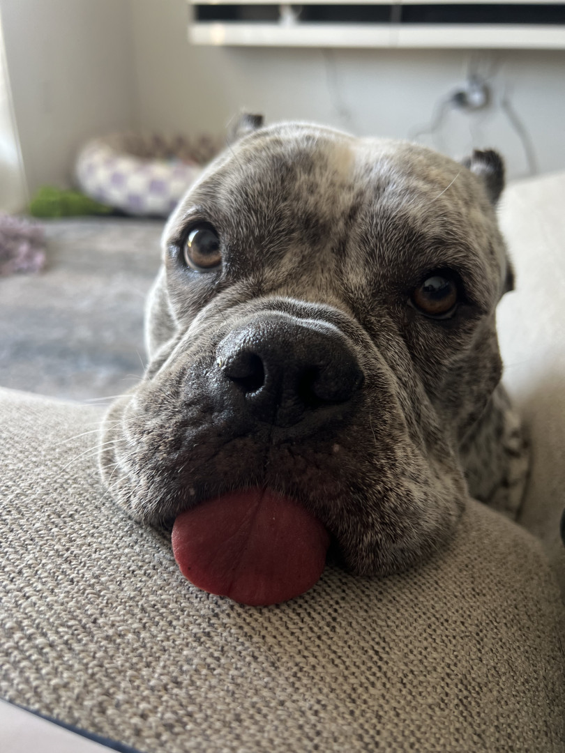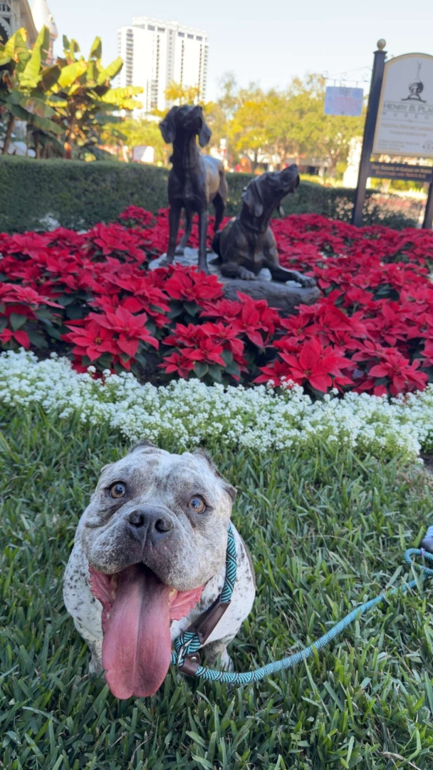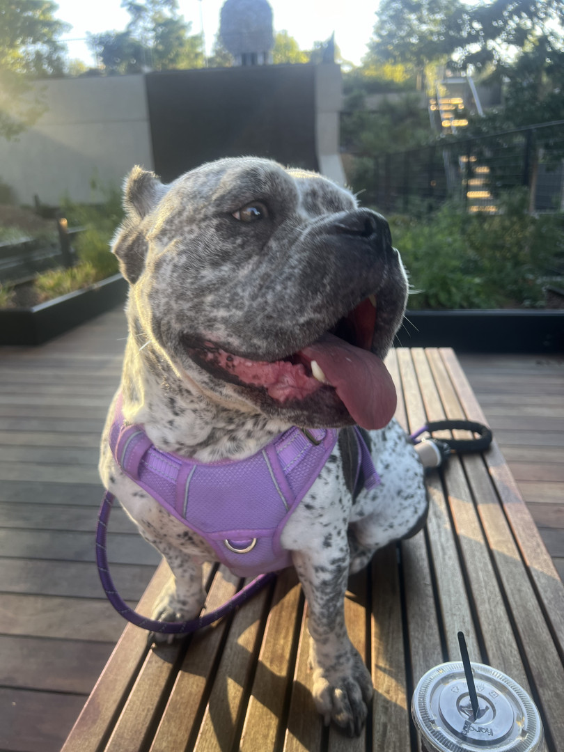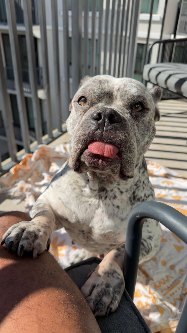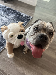 Bona is a rescued bulldog who was found dumped in a park after being over bred. Since the she’s been nothing but playful and loving everyone