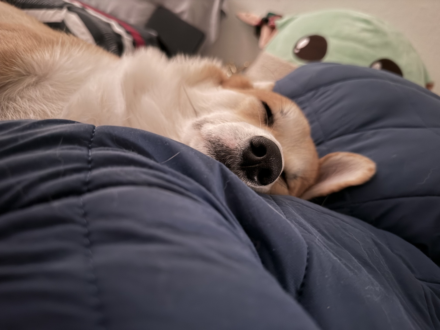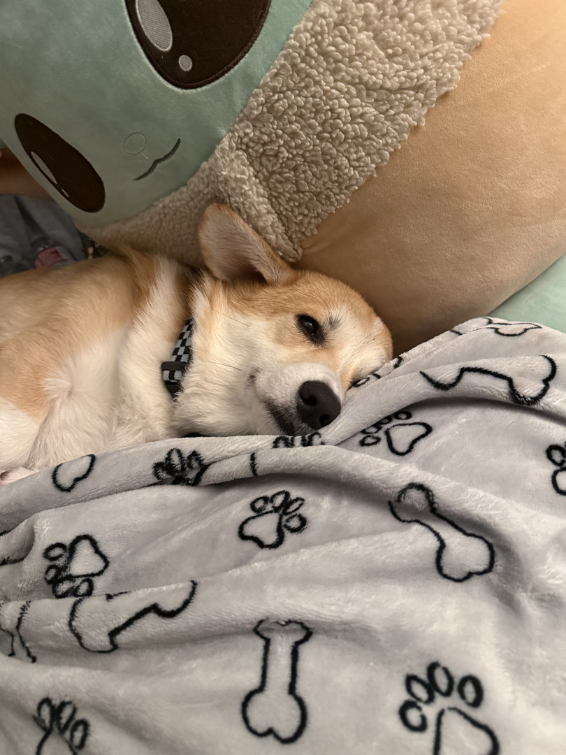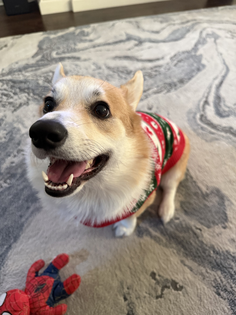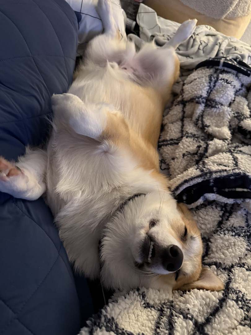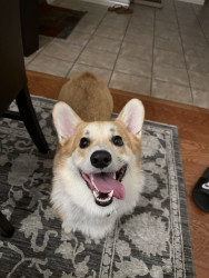 Happy corgi that loves to play! He also sleeps a lot and loves his treatos. He always sleeps beside his either his furmom or grandpawrents