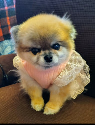 This is Peekaboo aka Boo. Boo is a champion show Pomeranian. She is now 8 yrs old. She likes to peek through any spaces she can!