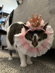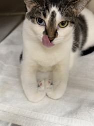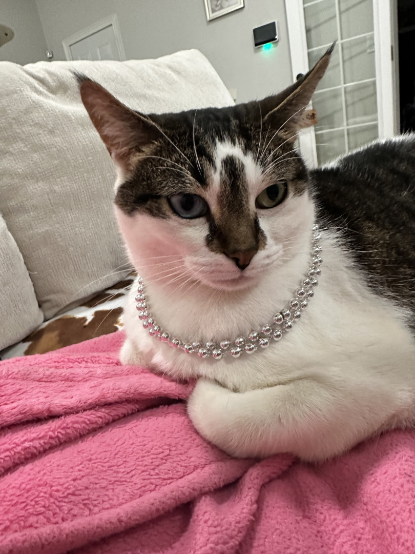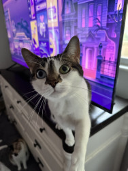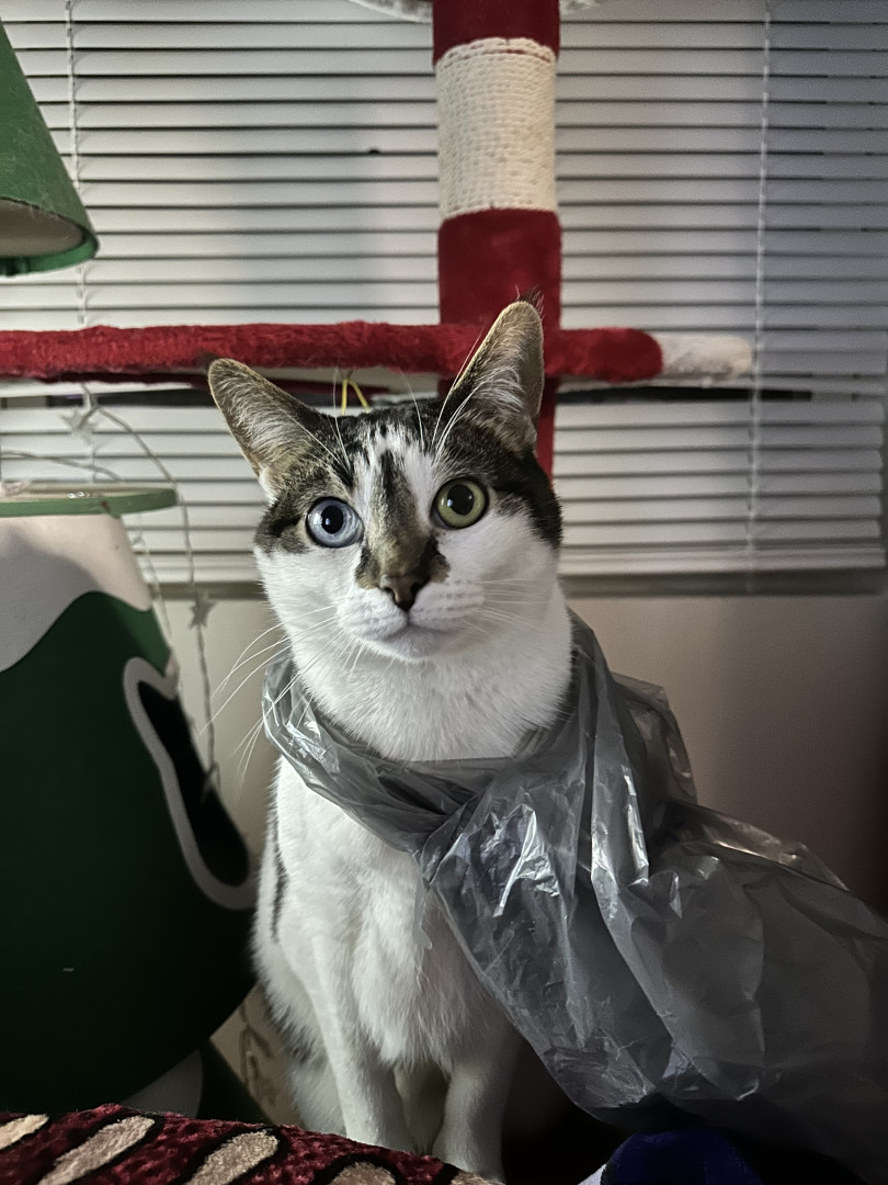 Receive Text UpdatesBoo loves to take your fresh from the grocery store plastic bags, she wears them on her neck and walks around with it, she goes crazy licking it. She also loves trash (straws, piece of paper, box) She loves watching TV, is not ashamed of getting in your way.